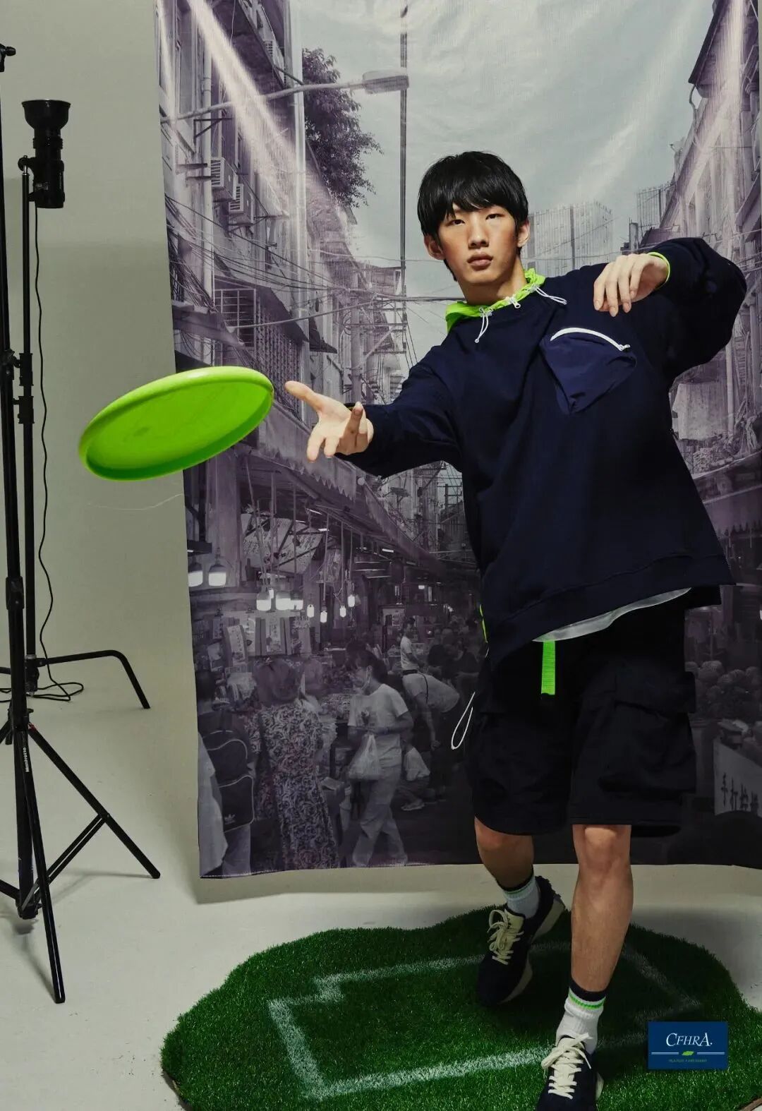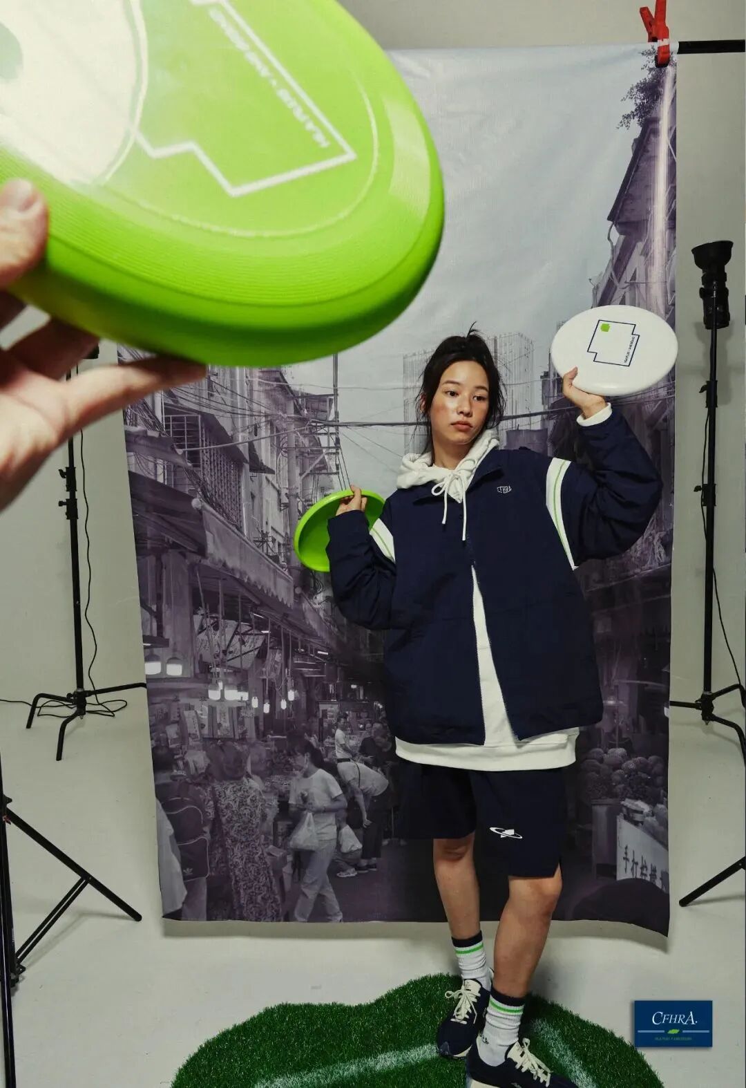 系列单品以白、黑、靛蓝及亮绿为主要配色,多口袋设计提升了运动实用性。「CFHRA」系列分为Athletics(运动)和Daily(日常)两个风格方向。Athletics风格提供运动装备,拥有更强的专业性能,而Daily则更像是飞盘热爱者在日常状态下的穿搭,整体风格更休闲,飞盘、字符等印花图案彰显运动主张。