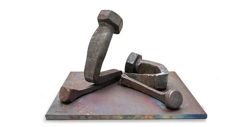 大约十年前,这位铁匠在瑞典伯格斯拉登的一个谷仓,发现了几根生锈的螺栓钉,在他到这些扭曲、锈迹斑斑的螺栓钉那一刻,就被这些螺栓钉吸引了,在他的眼中,这些螺栓钉就像是一个个经历过生活洗礼的普通人,于是,他就将这些螺栓钉收集起来,并拿到他的工作室里进行加热、锻造、弯曲,制作成抽象的艺术作品。