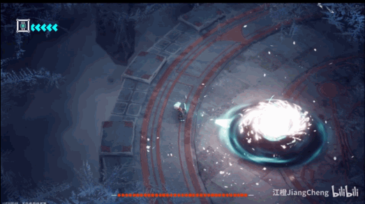 而后半段则会出现一些单凭操作无法应对的情况。比如boss会将你猛地吸到某个边缘,接着释放大范围AOE,玩家必须提前预判并开启光缝,在被吸过去的瞬间回溯,躲避攻击。能看出来,这些攻击往往倾向于让玩家提前做好准备,比起操作更偏向于背板式的解谜。