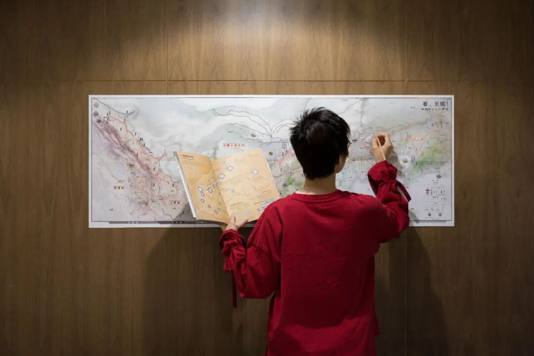 △“帝都绘工作室”创始人正在校对《长城绘》地图