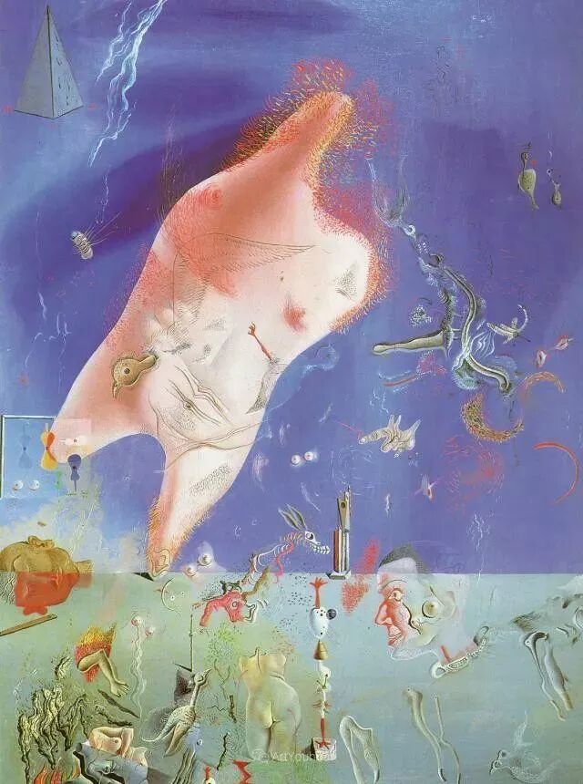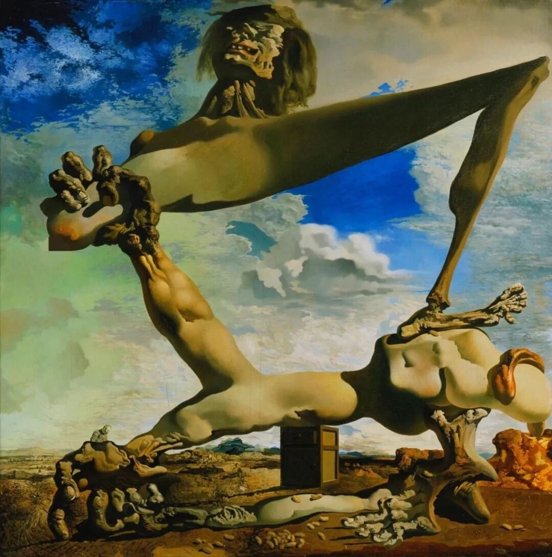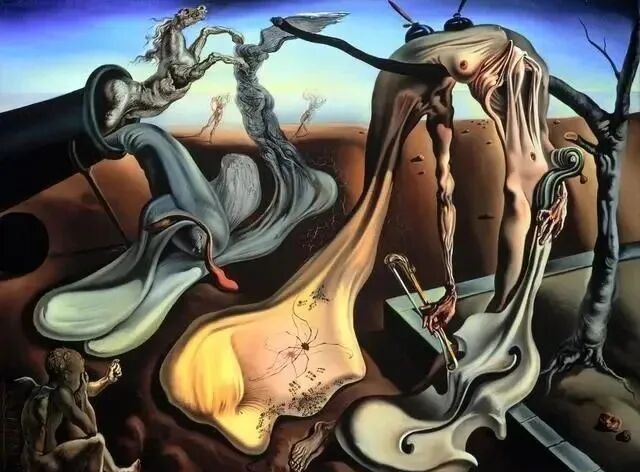 达利把睡眠想象成沉重的怪物,一个被现实的拐杖支撑着的不朽典型。