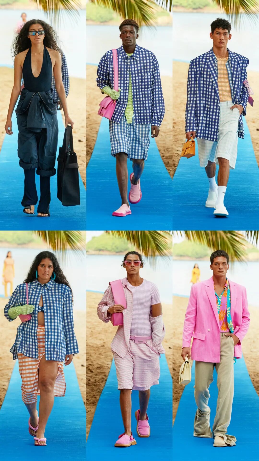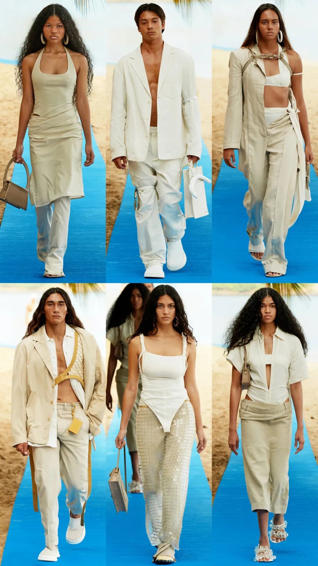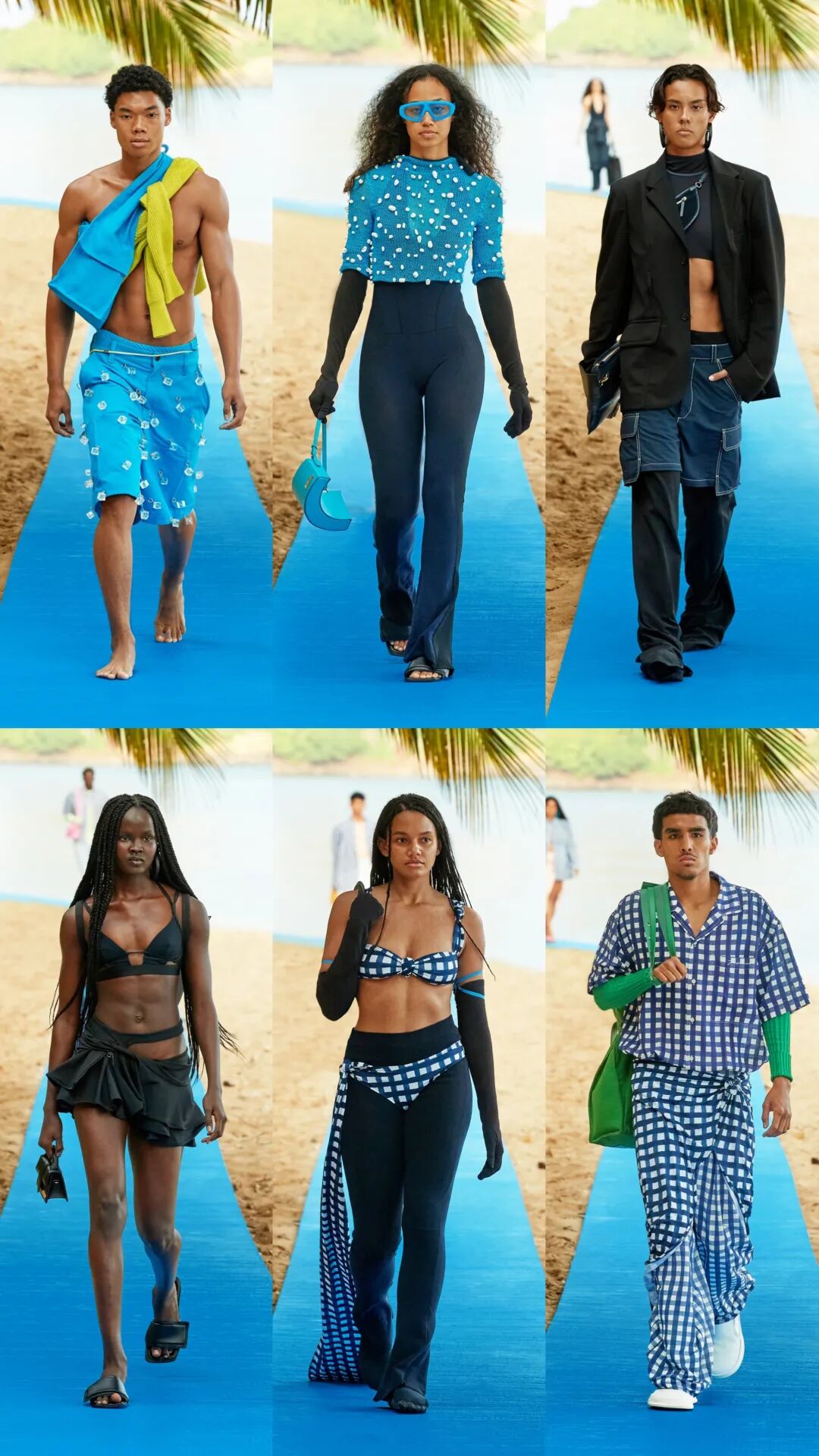 是不是很有感觉?正深受疫情困扰的我们,看到这样的度假景观快绷不住了吧?本次大秀以「Le Splash」为主题,还是那个会搞气氛的 Jacquemus ,在夏威夷的海滩边铺就一条蓝色大道,伴随着阳光、海浪与绿色椰林,别有一番度假风情~ 本次大秀没有选择超模走秀,而是找来了当地的少男少女,他们健康的肌肤与鲜艳的色彩服装之间形成醒目的对比,让人瞬间开始向往夏天的到来~