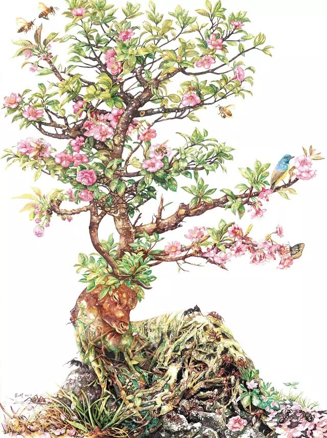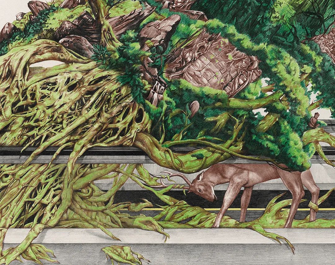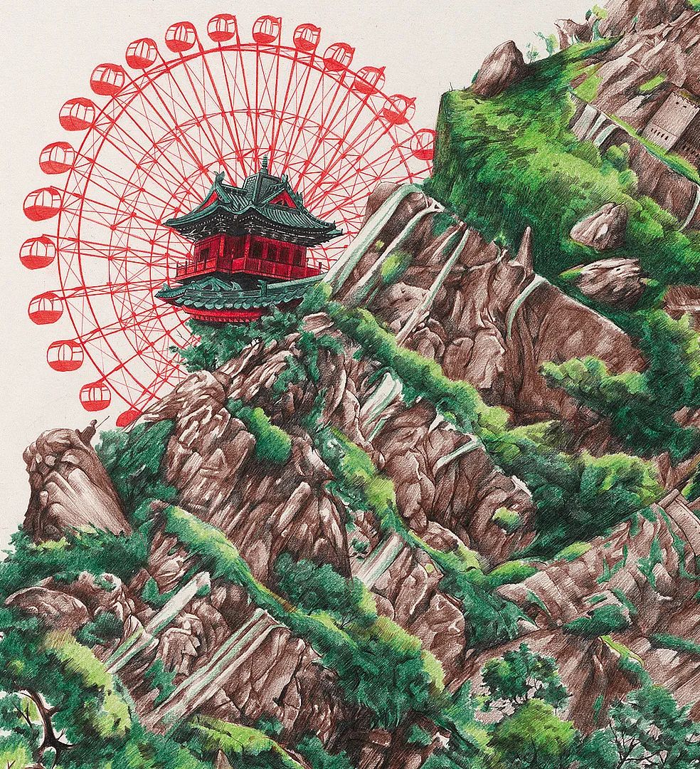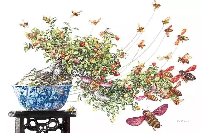 “《平行国度》这个系列每幅画都是以电梯为载体,