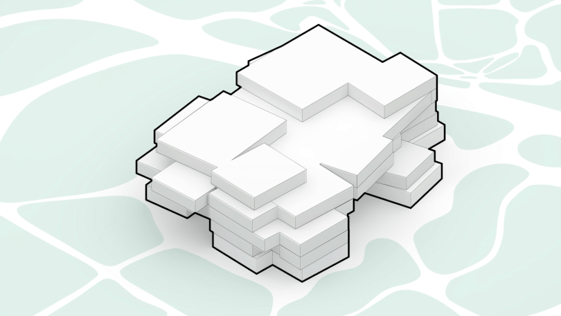 体块交错会产生两种空间:1. 同一层的体块和体块之间会产生间隙空间,这可以用来作为入口灰空间。我们从GF(地面一层)开始,这一层便是根据入口的位置来确定错动的方向。