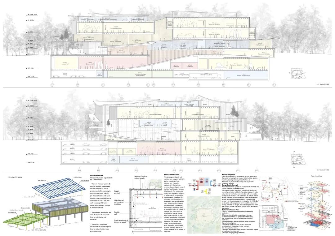 任务书上指出需要设计一个匈牙利新国家美术馆,一个路德维希博物馆,要尊重城市公园的历史环境,为布达佩斯居民以及来自匈牙利其他地区和国外的游客提供开放、透明、有吸引力的社区空间并且以创新的方式提出满足可持续性最高要求的设计概念,创建示范性建筑。