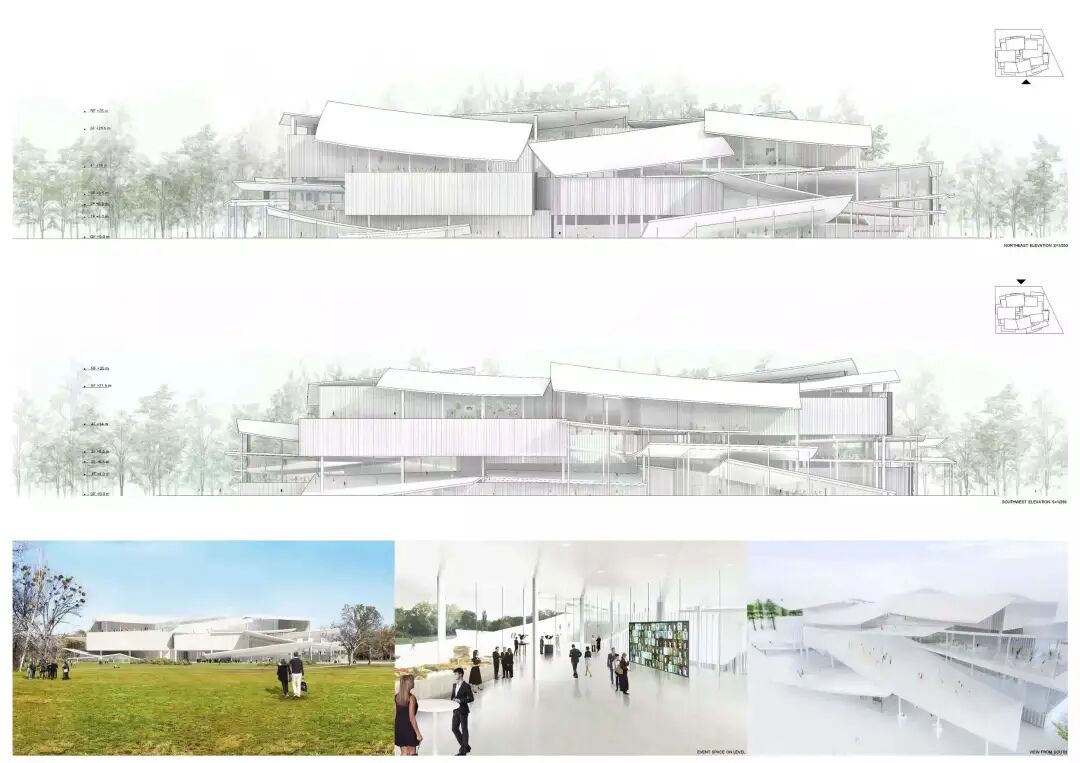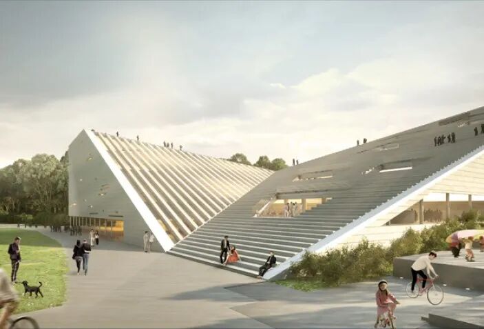 阿精认为Snøhetta的方案将室内外的联系做的很好,将美术馆与博物馆的功能分开并集中布置,用一个带有层层退台空间的作为屋顶。大屋顶作为室外公共空间,不仅为人们提供休息及游戏的空间,并且通过结构形成流畅的交通动线,使整个建筑的功能与形式得到统一。