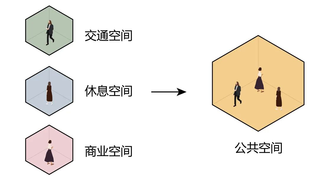 但是展览馆不能只有展览空间吧,你还需要交通空间,休息空间,商业空间等等,这些空间我们可以将其统一为公共空间。