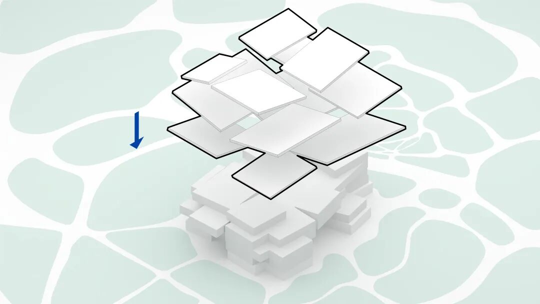 如果我们把不同倾斜角度的方形板块作为一种介质插入建筑中,那么他们不仅能够连接楼板,为室内提供灵活性的空间和连续的观赏流线还可以与周围环境交融以提供与自然相连接的穿透感!