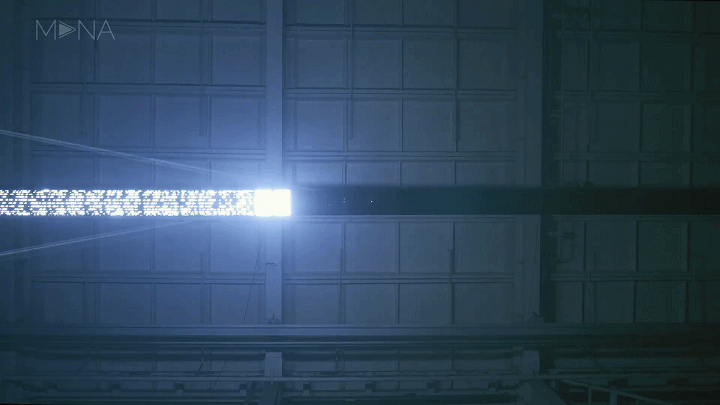 这是俄罗斯创作团队SETUP在一个充满工业风的厂房内做的灯光装置测试,将激光与影像装置巧妙结合,激光划过装置时会点亮对应的影像,仿佛一道天外之光划过长空,旨在用新的数字科学技术创造新的表达方式。