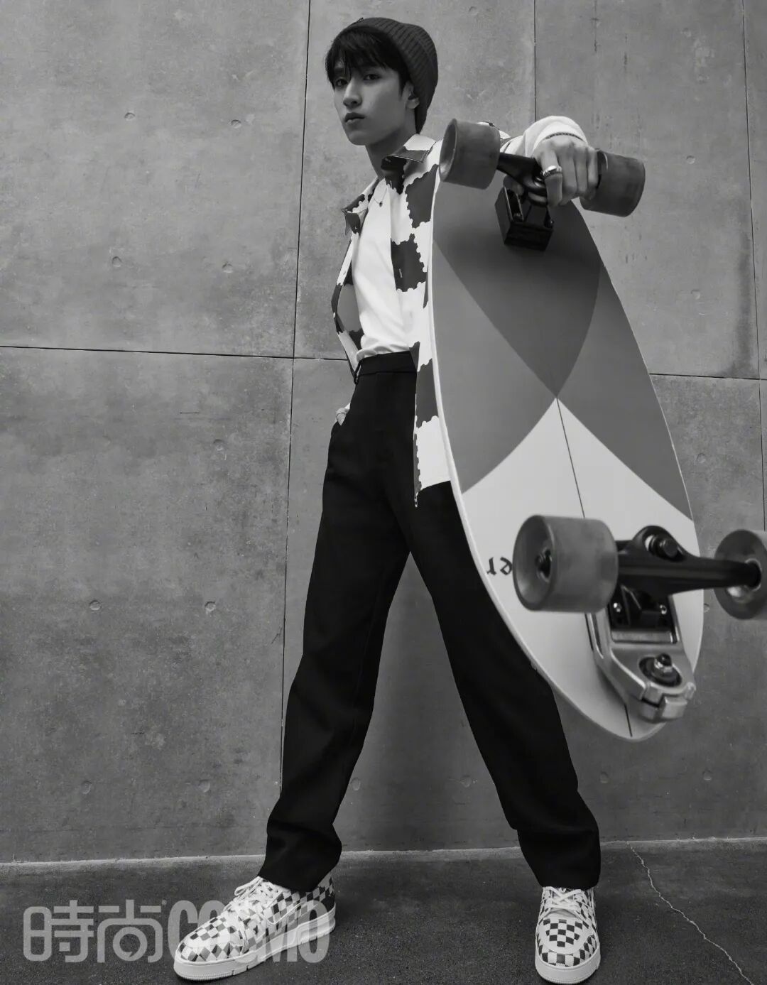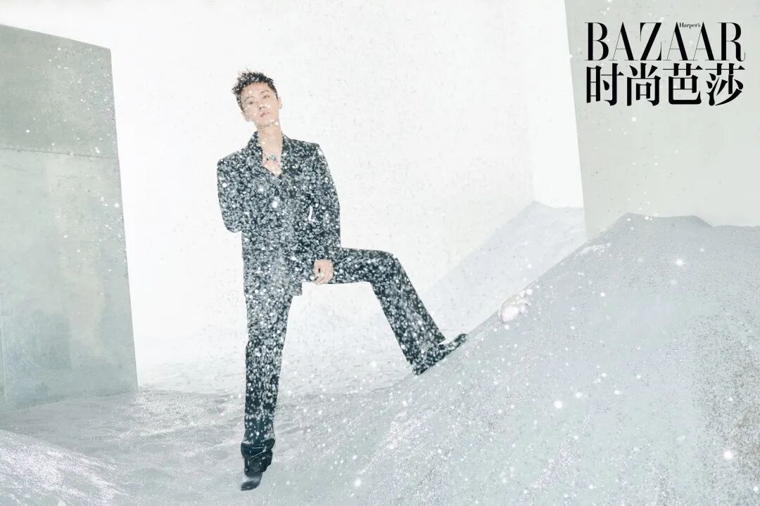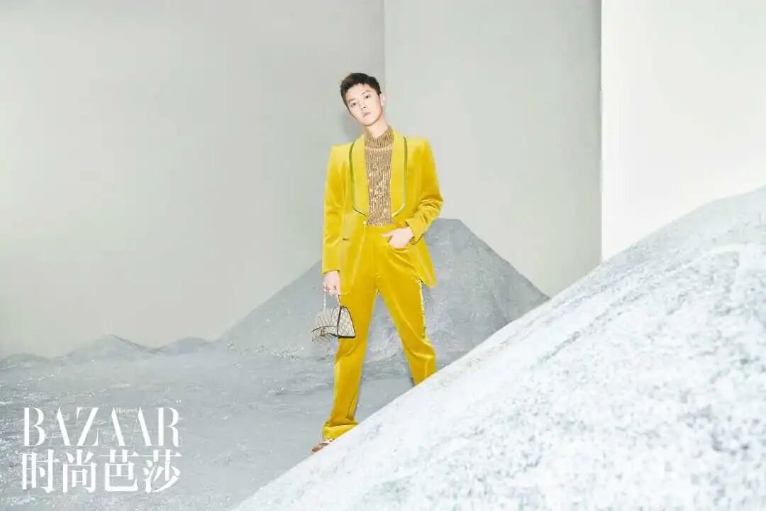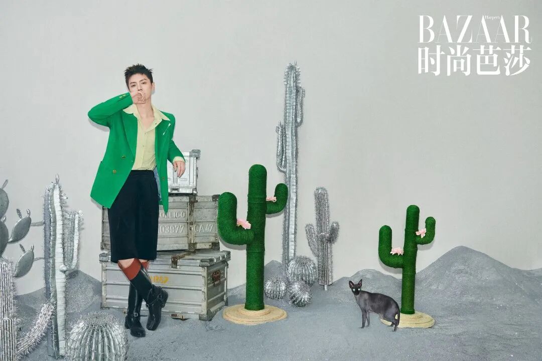 《时尚芭莎》另一位封面人物是鹿晗,他身着一系列 GUCCI 服装,以短发断眉造型拍摄怼脸照,记录下帅气的一面,大家可以顺便来跟鹿老师学色彩穿搭了!