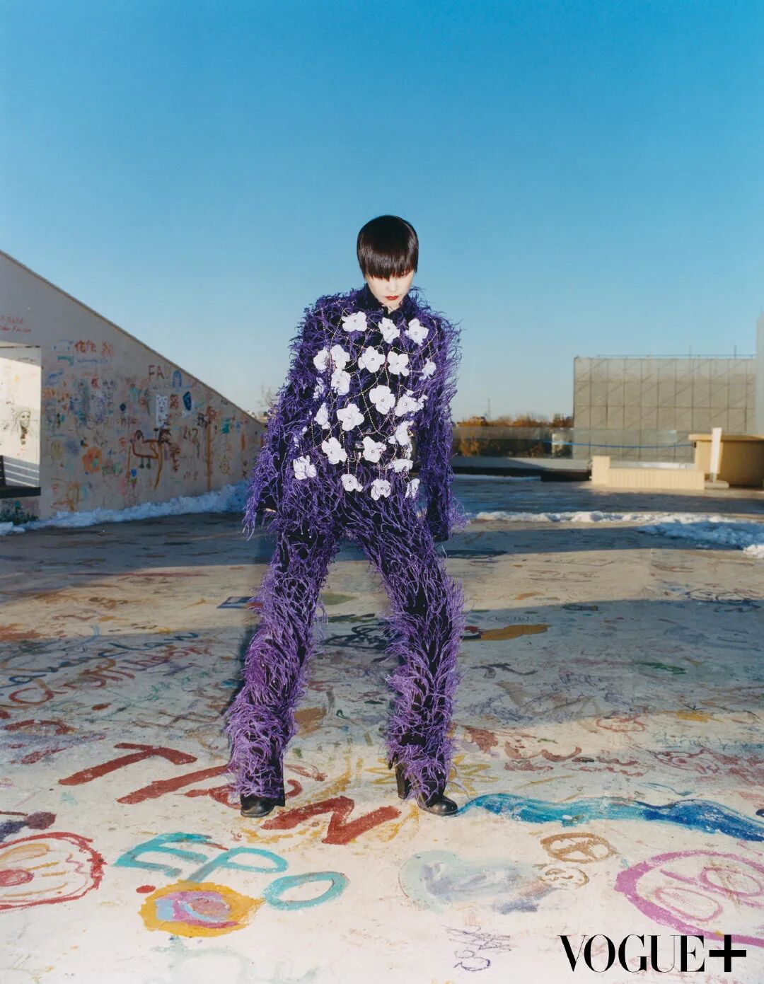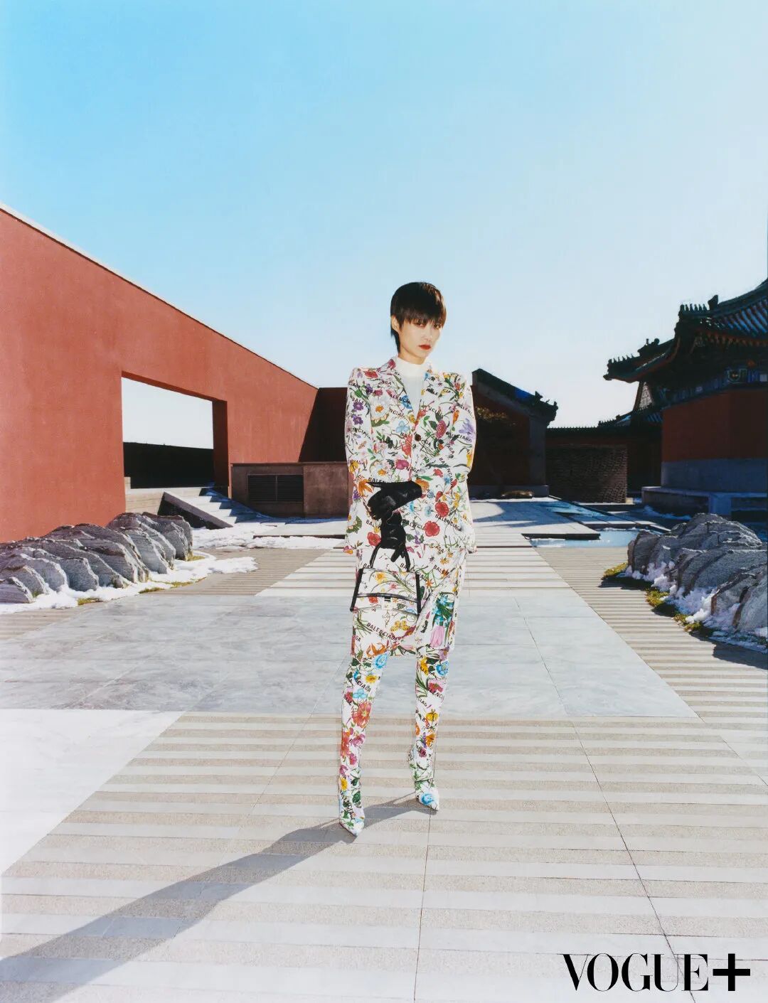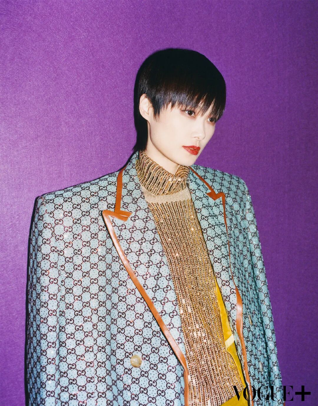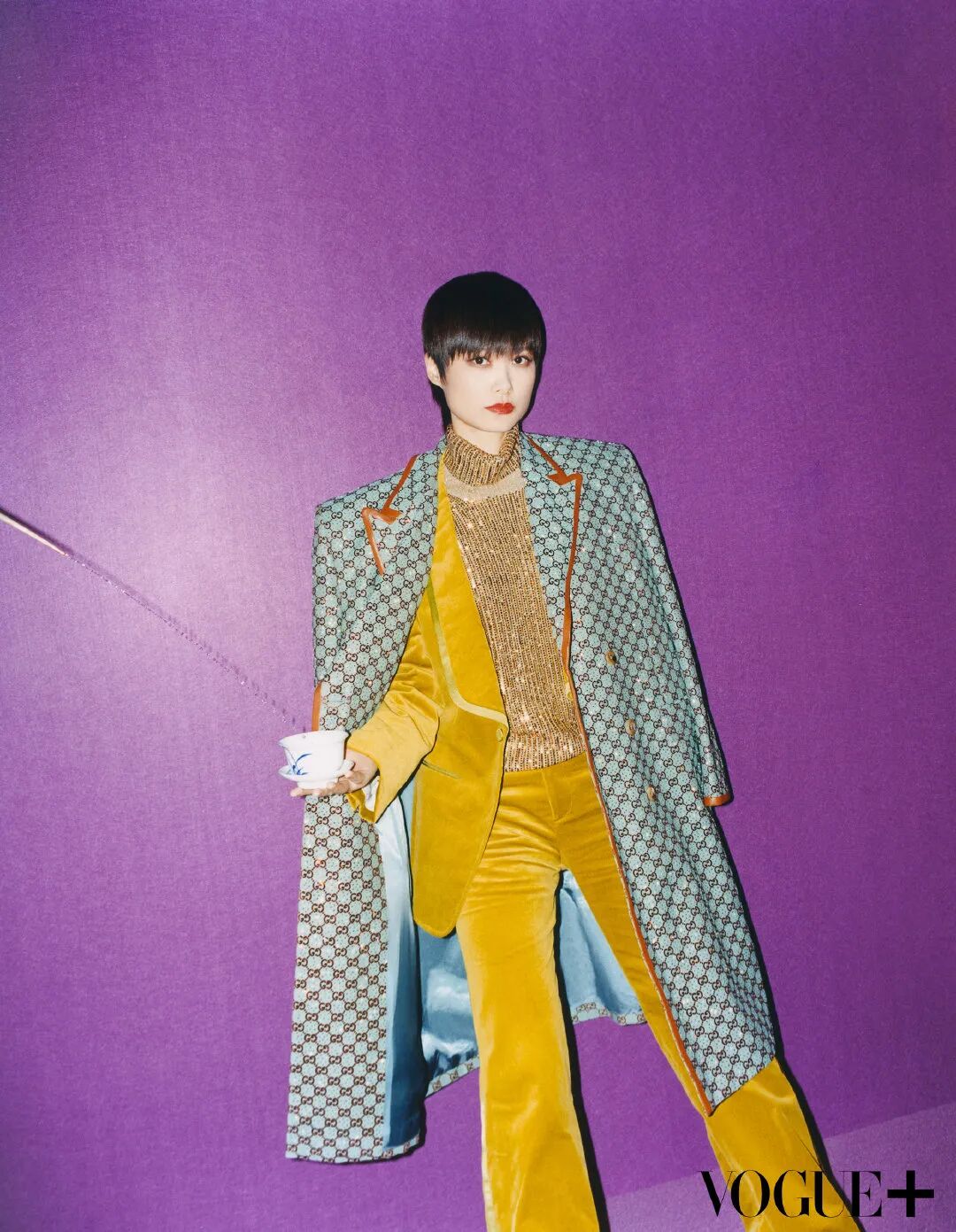 李宇春身着Gucci × Balenciaga 「The Hacker Project」系列印花套装登上《VOGUE+》十二月刊封面,分别在成都与北京完成拍摄,再度呈现不同以往的短发造型。