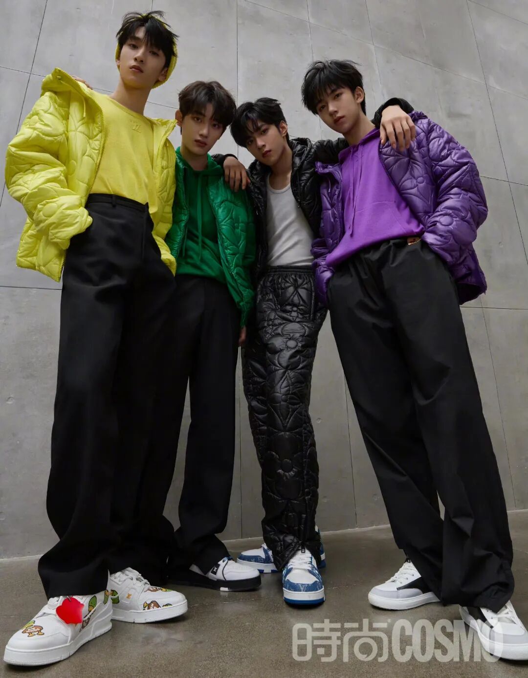 时代少年团登上《时尚Cosmo》12月刊双封面,马嘉祺、丁程鑫、宋亚轩、刘耀文、张真源、严浩翔、贺峻霖七位成员首次拿下五大女刊,被 Louis Vuitton 承包封面服装,你觉得谁的表现力最可?
