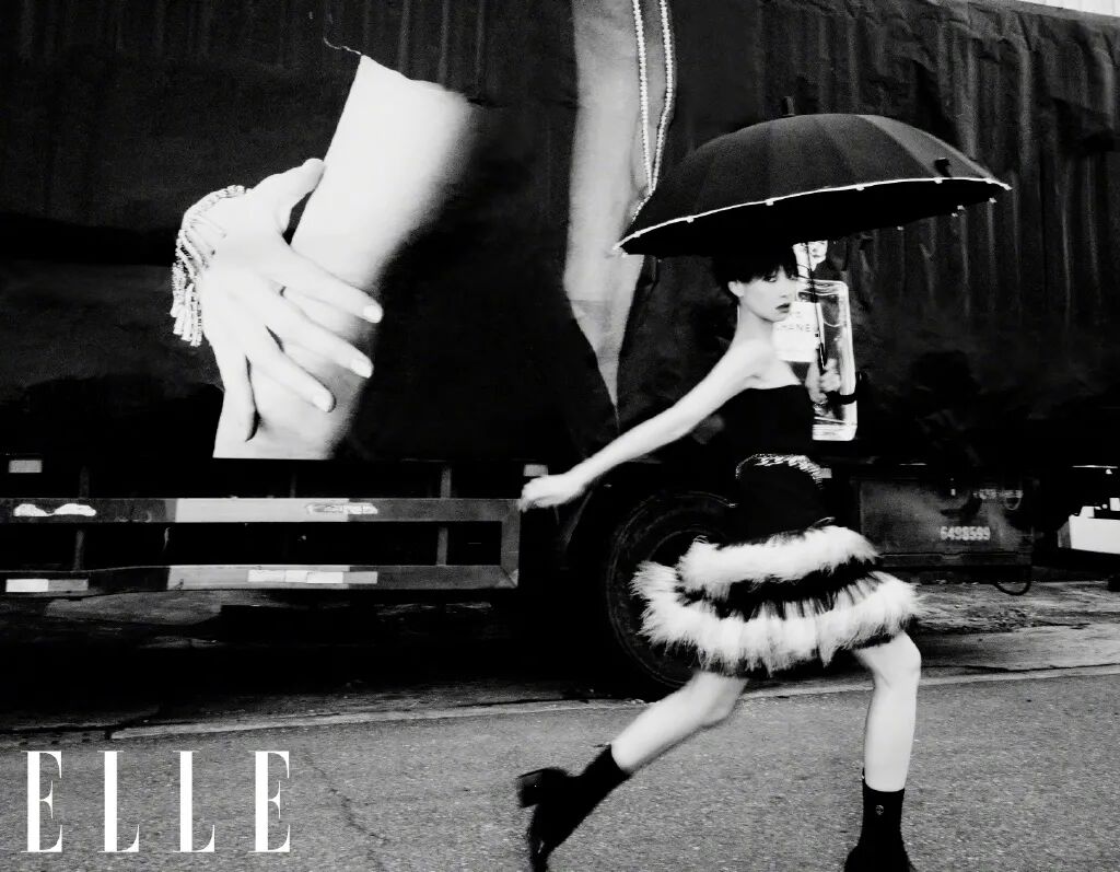 香奈儿品牌大使宋茜登上《ELLE》十二月刊封面,红唇粗眼线造型格外突显人物个性,与全黑背景融为一体的创意好高级好赞