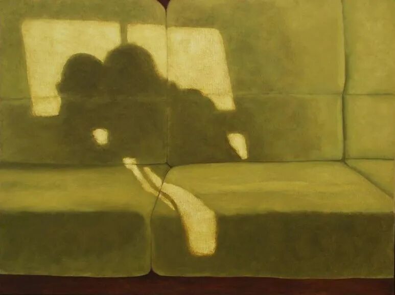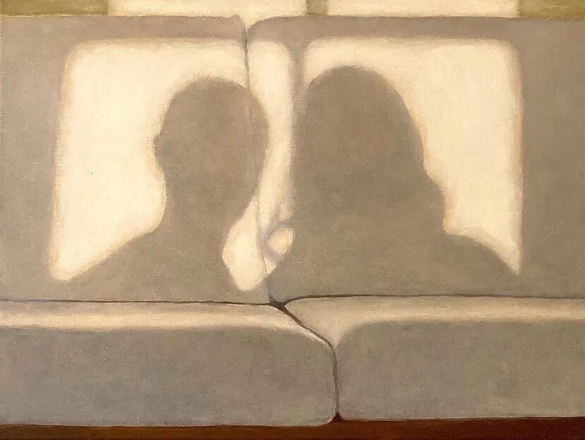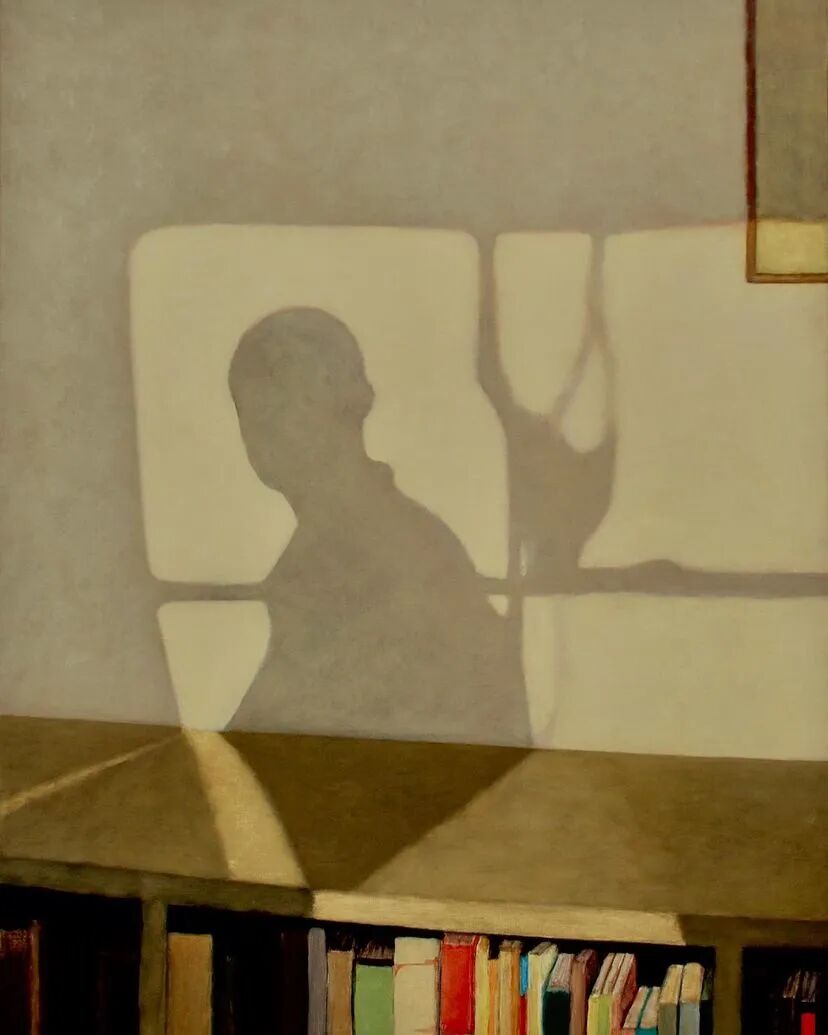Jess Allen创作了以轮廓和阴影画面为特色的简约室内场景,力求捕捉瞬间,而不诉诸显眼或独特的叙事。自然光从上方落在熟悉的家庭场景上,沙发和成堆的书被剪裁得很近的视图覆盖着影子。 她没有为作品的人物命名,通过光影的相互作用,希望观众用自己的经历和欲望来理解。