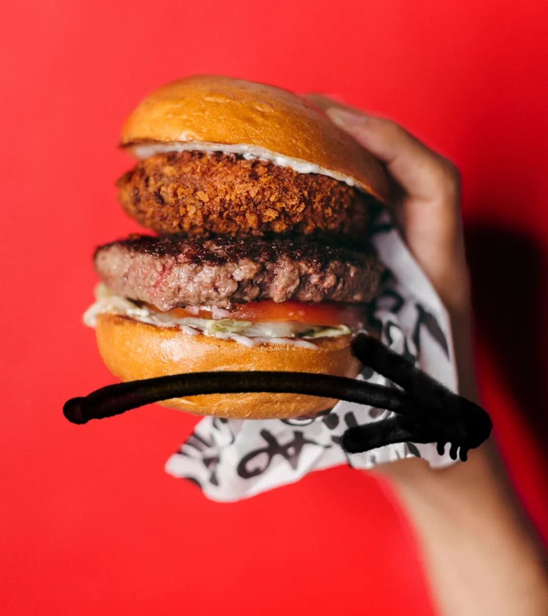 这时回看品牌logo,粗字重加双排组合的形式,像极了汉堡中的肉饼,不信你看!