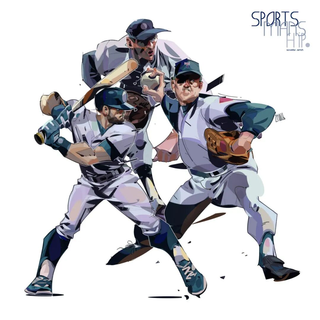 形体大开大合,对于角色肌肉力量感的把控非常到位,尤其是对角色的概括能力处理极为出彩,用颜色的对比呈现块面和笔触,笔触感自带潇洒趣味!是不可多得的参考素材。