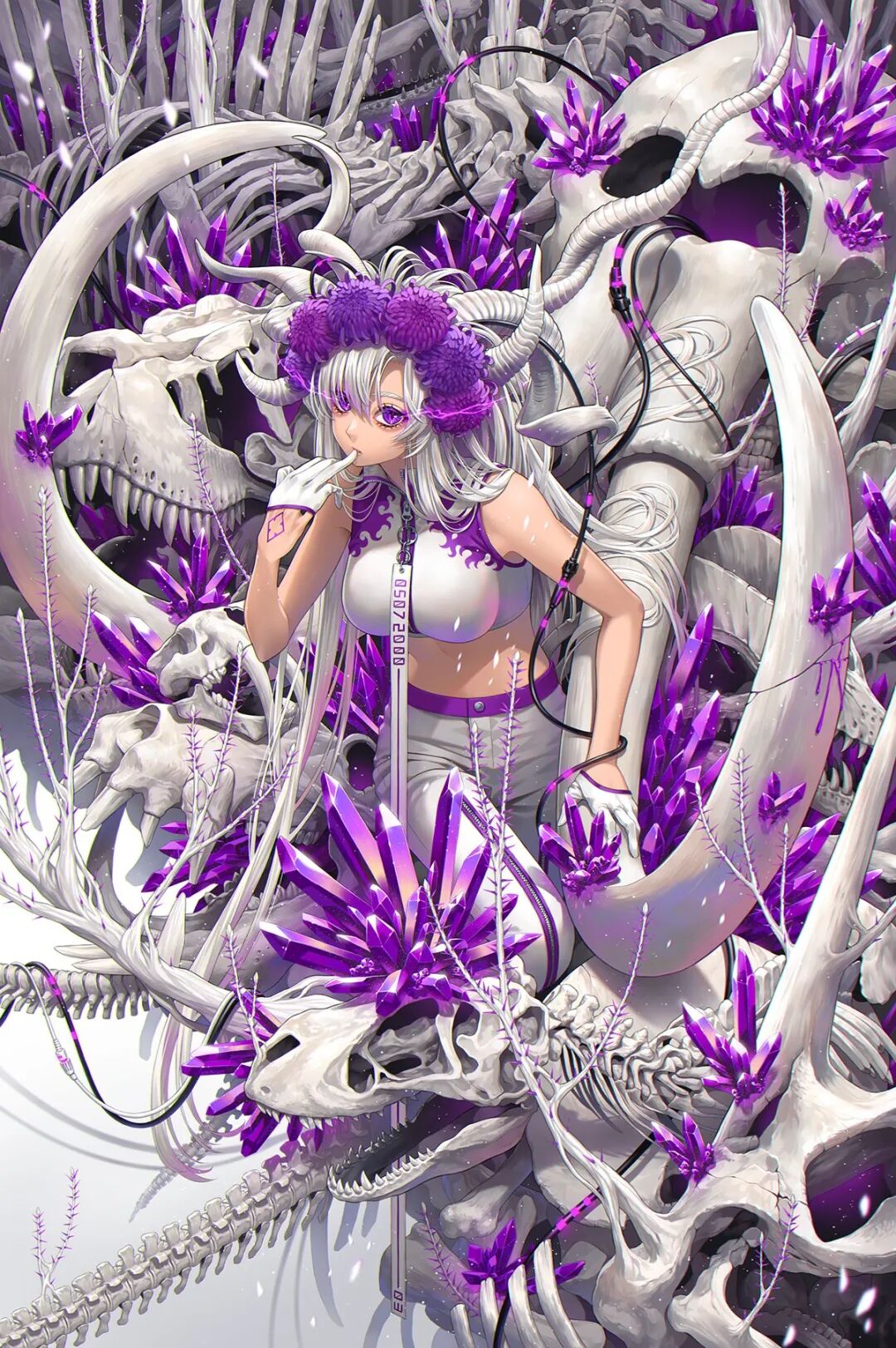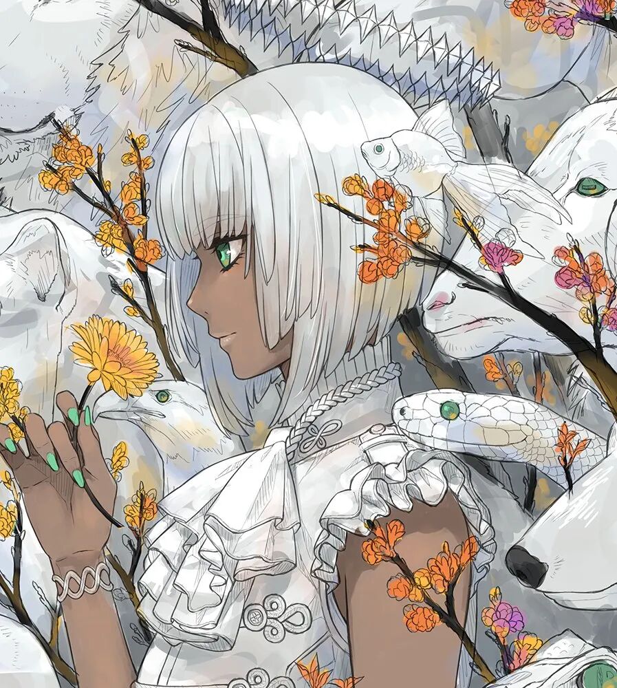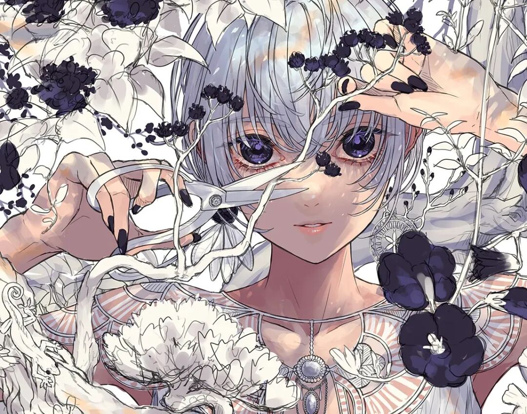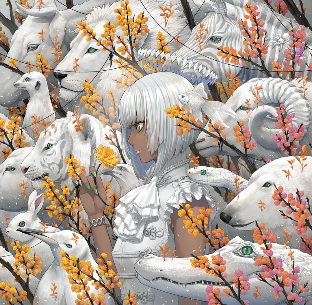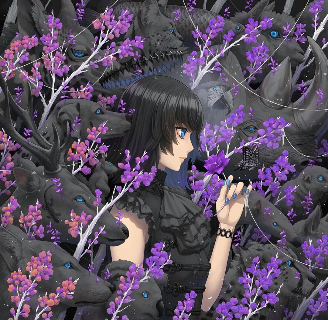 来自日本的角色设计师。最近进军NFT交易平台,仅仅一天作品被炒到约10W元人民币,售出的作品累计达35W人民币。其画风独树一帜,视觉冲击力极强,画面多运用线条造型,以鲜花和少女组合为题材,清新素雅的配色加上细致无比的细节,绘画功底十分扎实,线条流畅大气,画面繁而不乱,疏密对比得当。值得一提的是,画师在线稿过程中有意控制细节的产出,对于材质和氛围的把控得心应手。