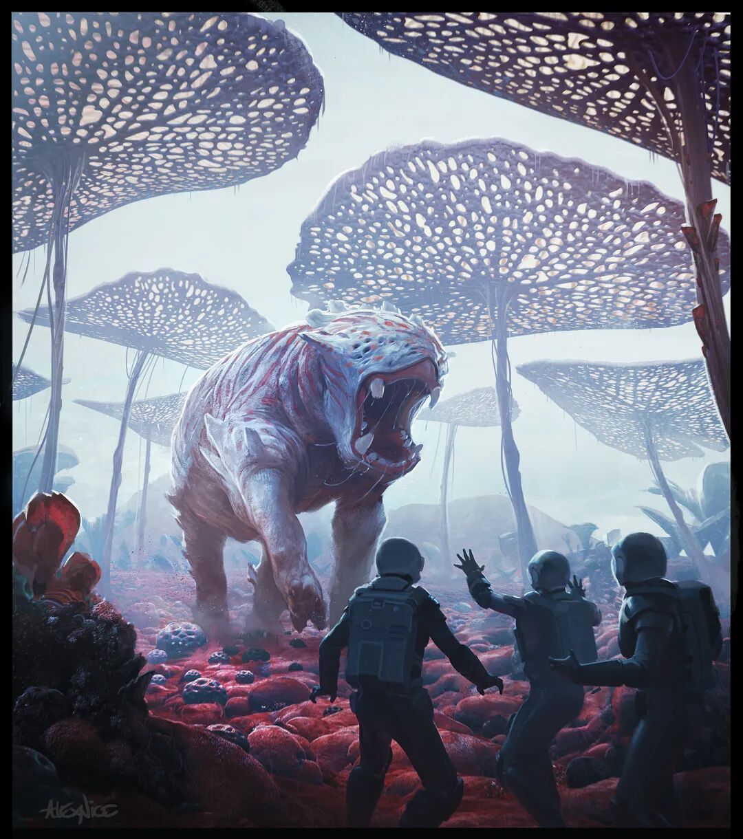 Alex也是一位2D和3D全面发展的资深大佬,他十分擅长创作科技感十足的场景,对于画面故事性的塑造拿捏地非常到位,视觉效果也相当出色。
