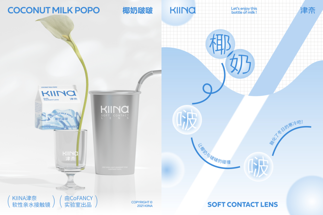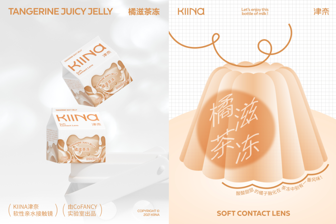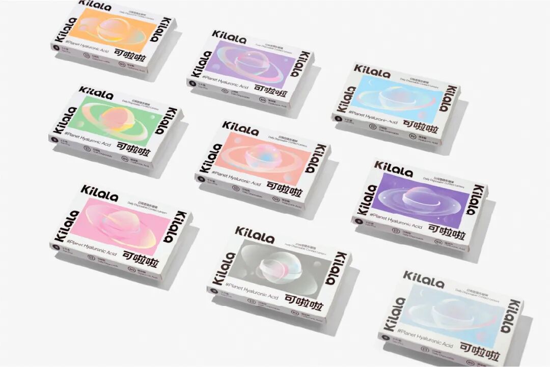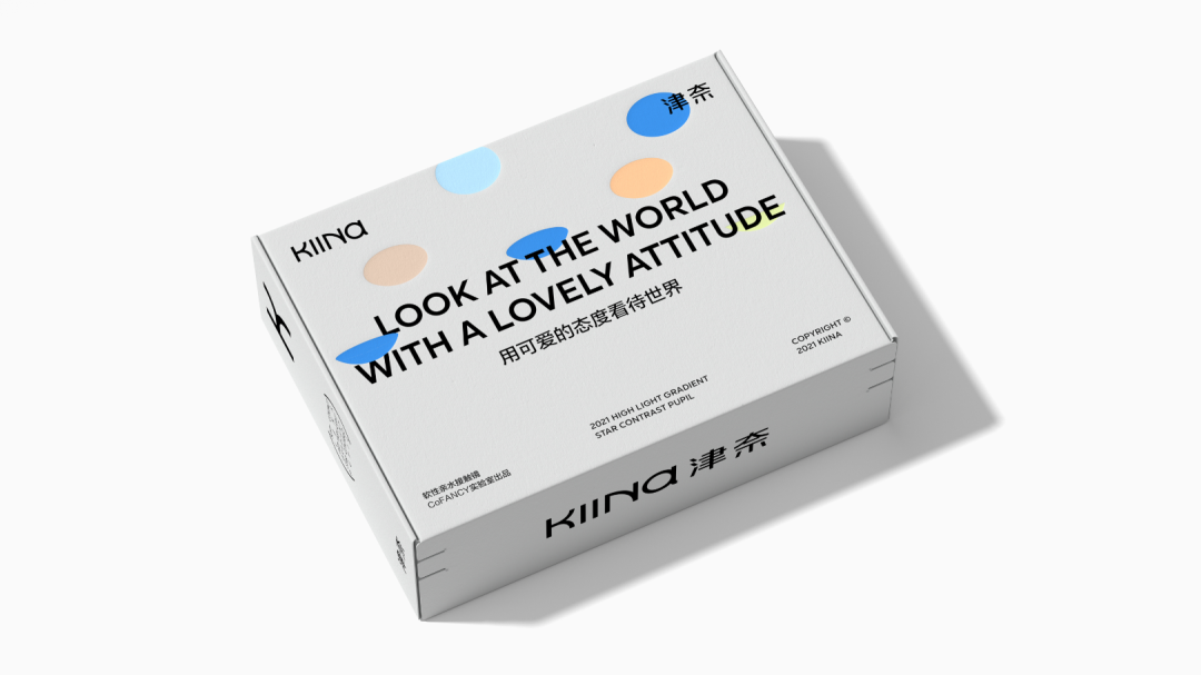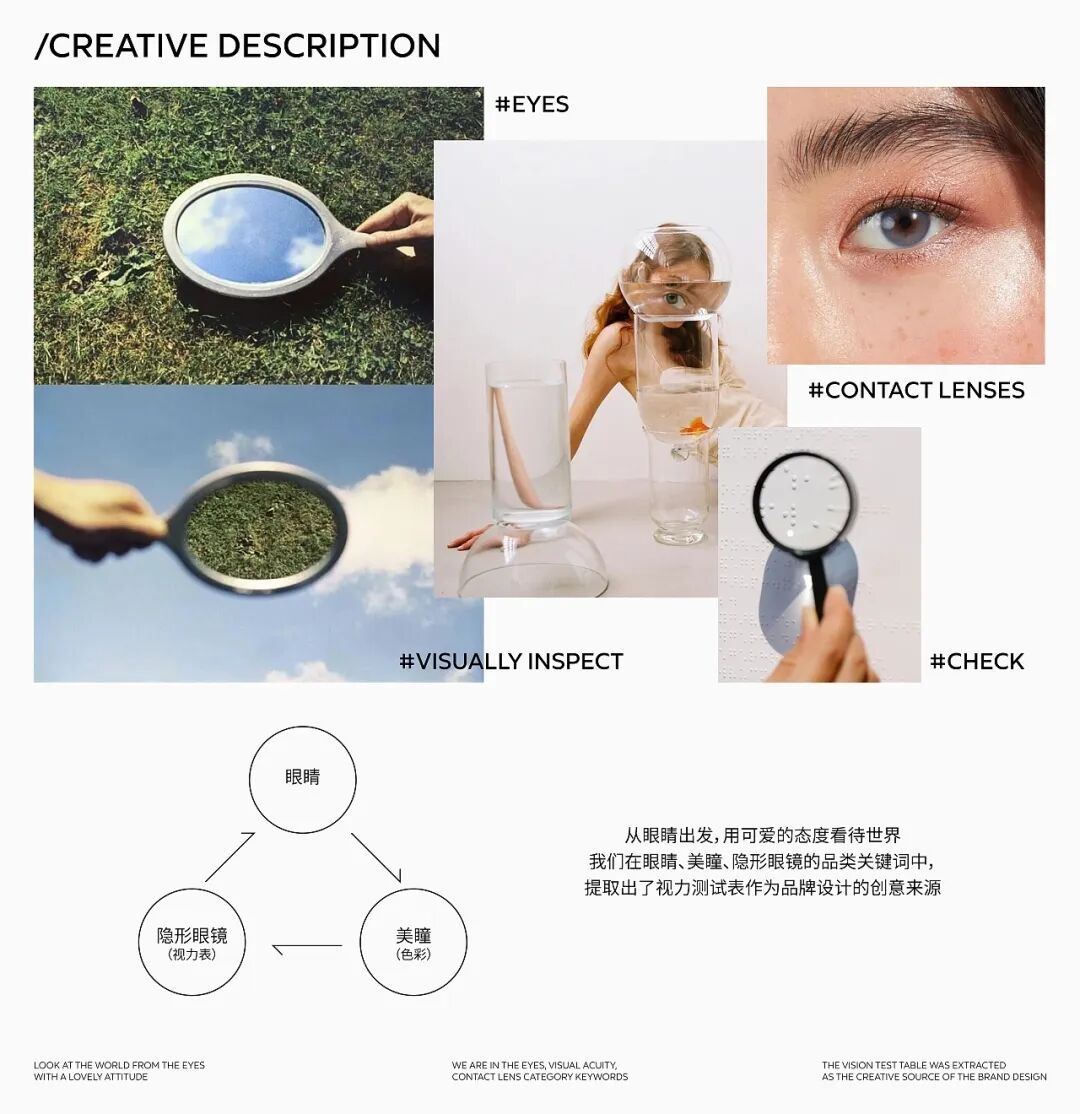 与呈大小角度图形变化的美瞳片颜色形成对比