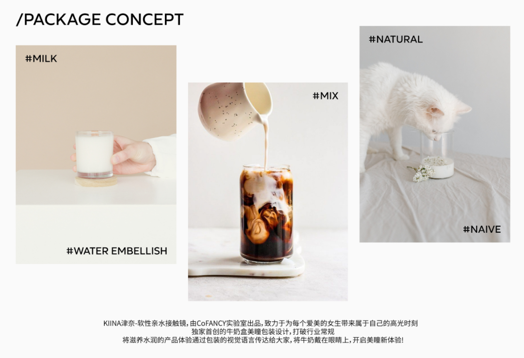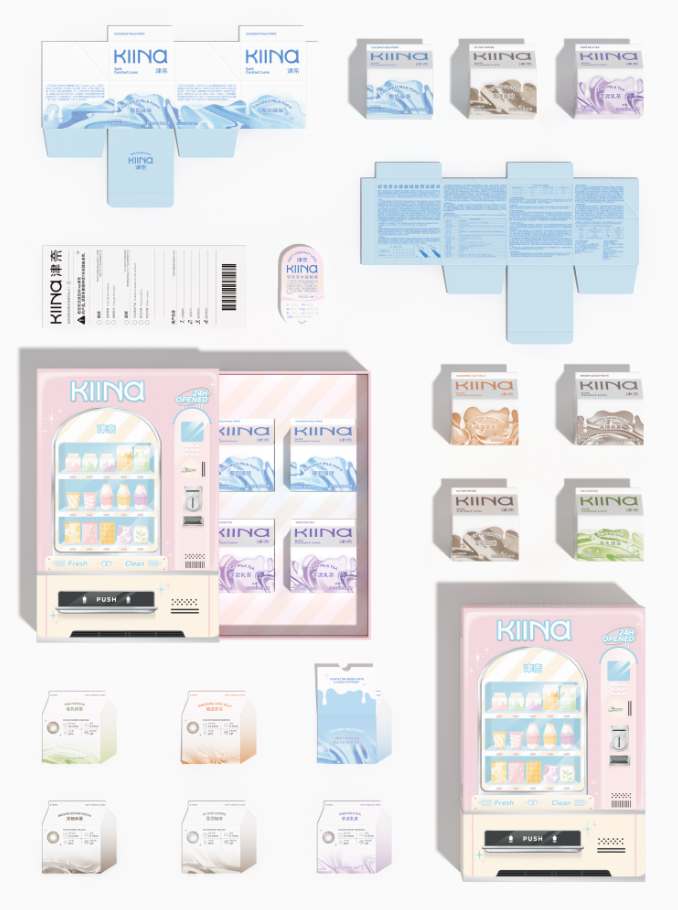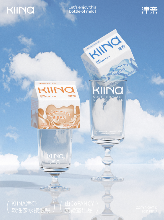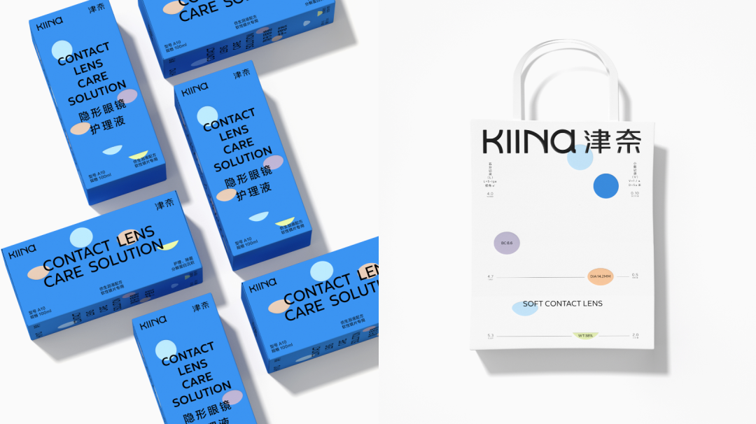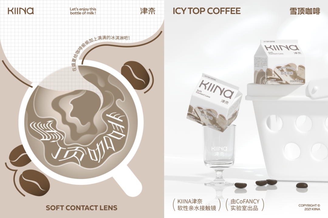 与呈大小角度图形变化的美瞳片颜色形成对比