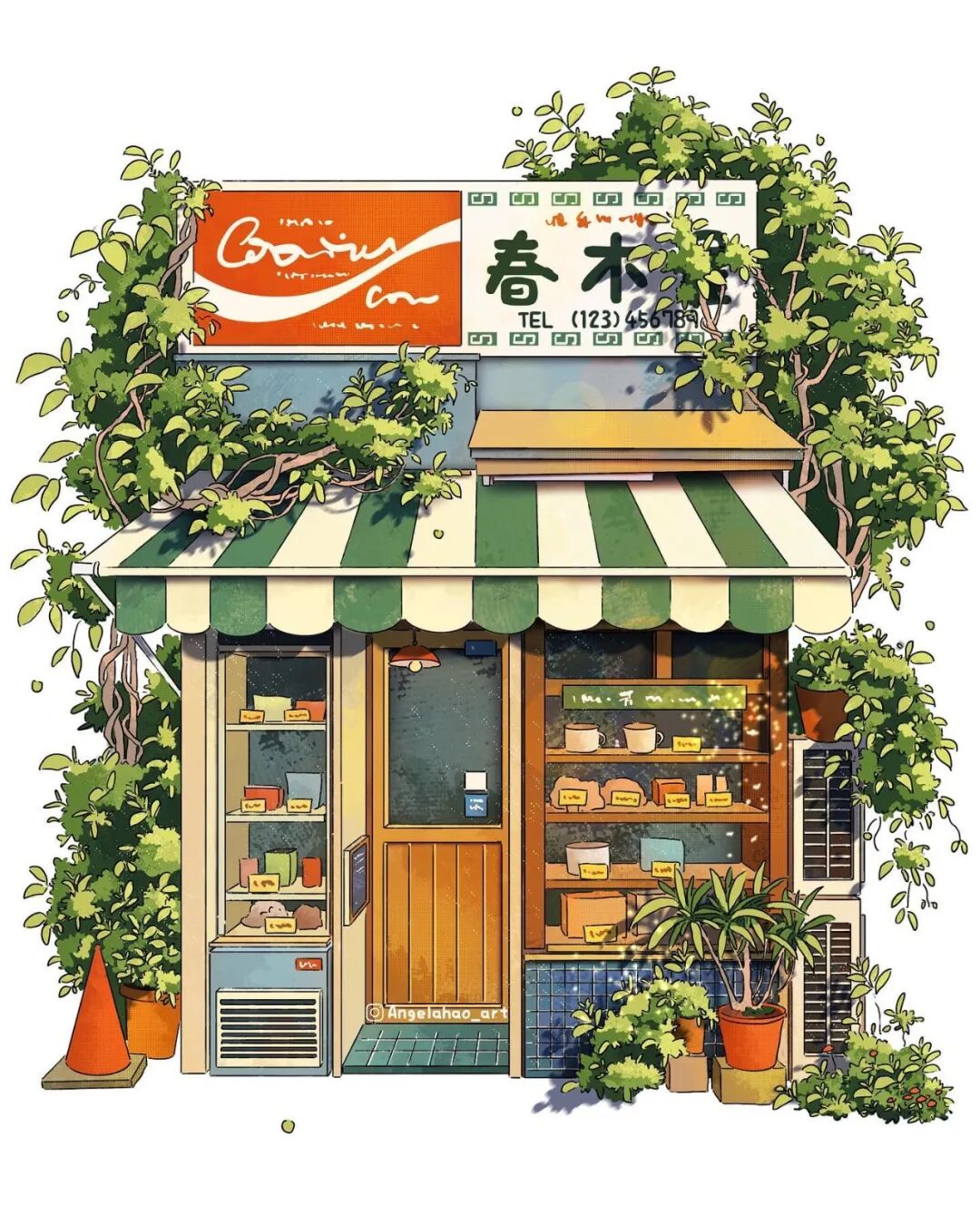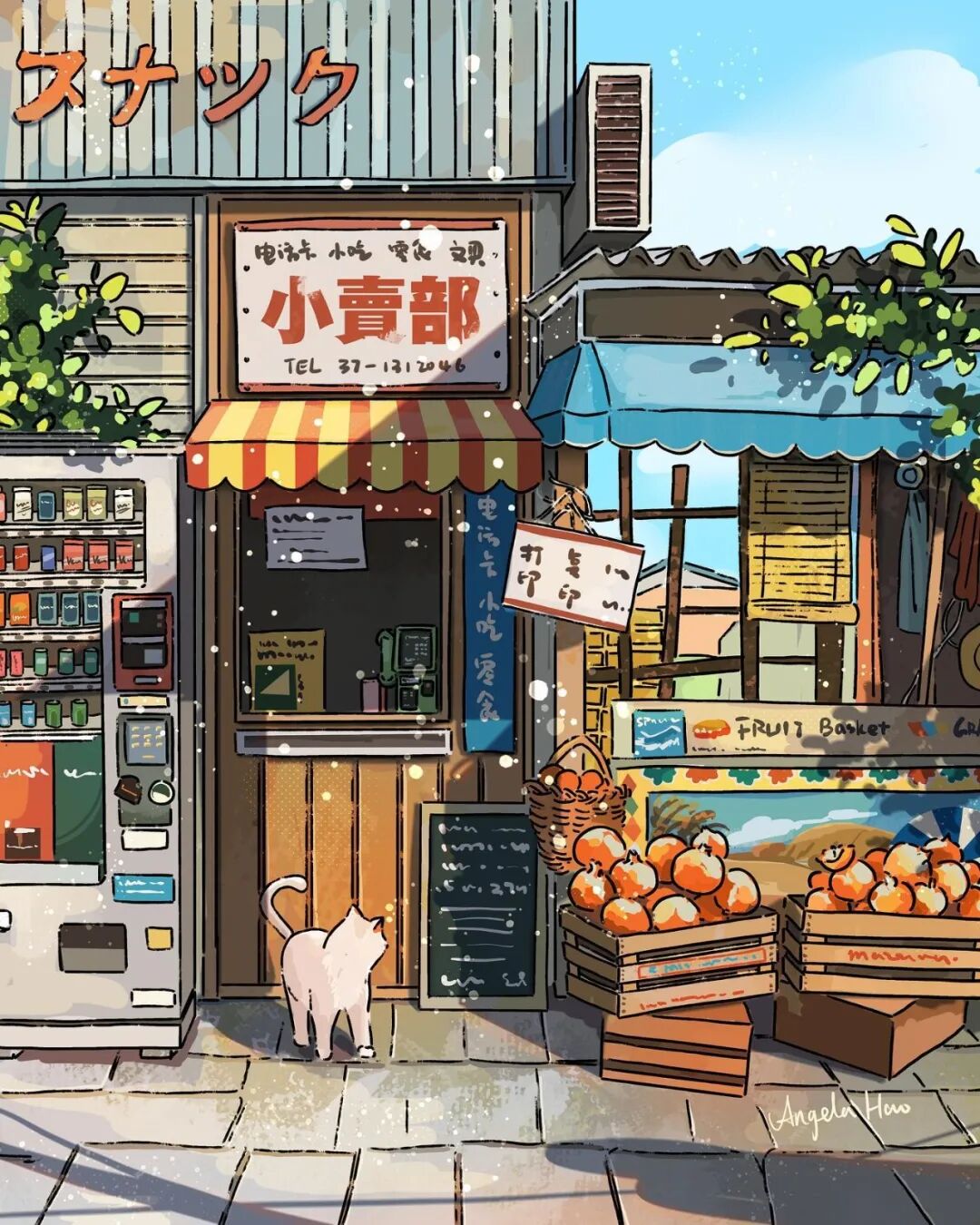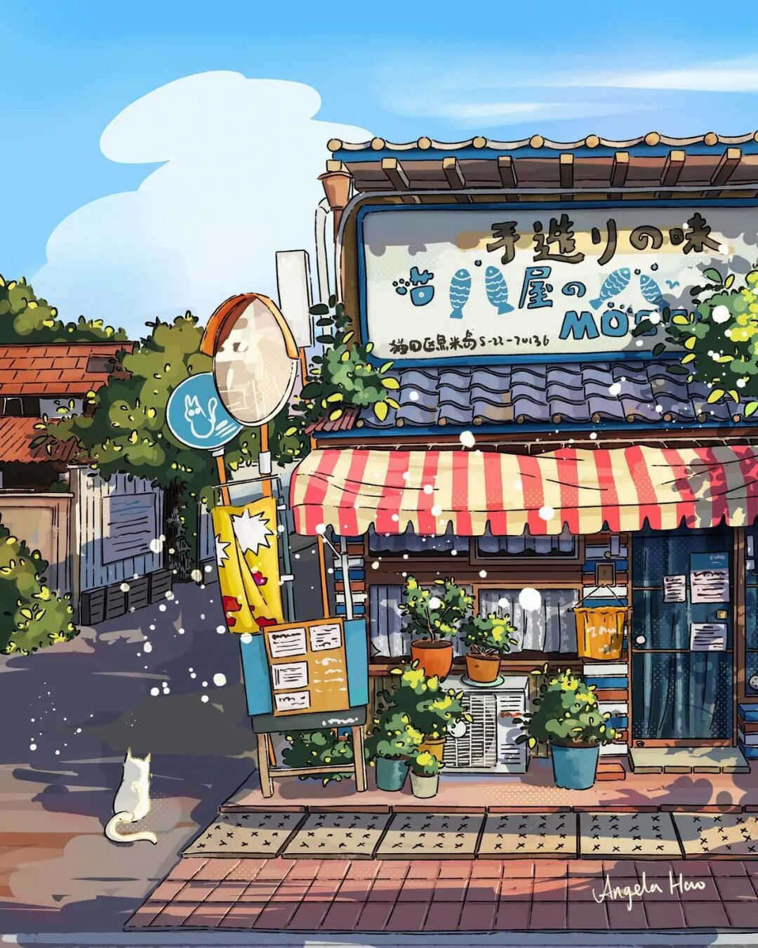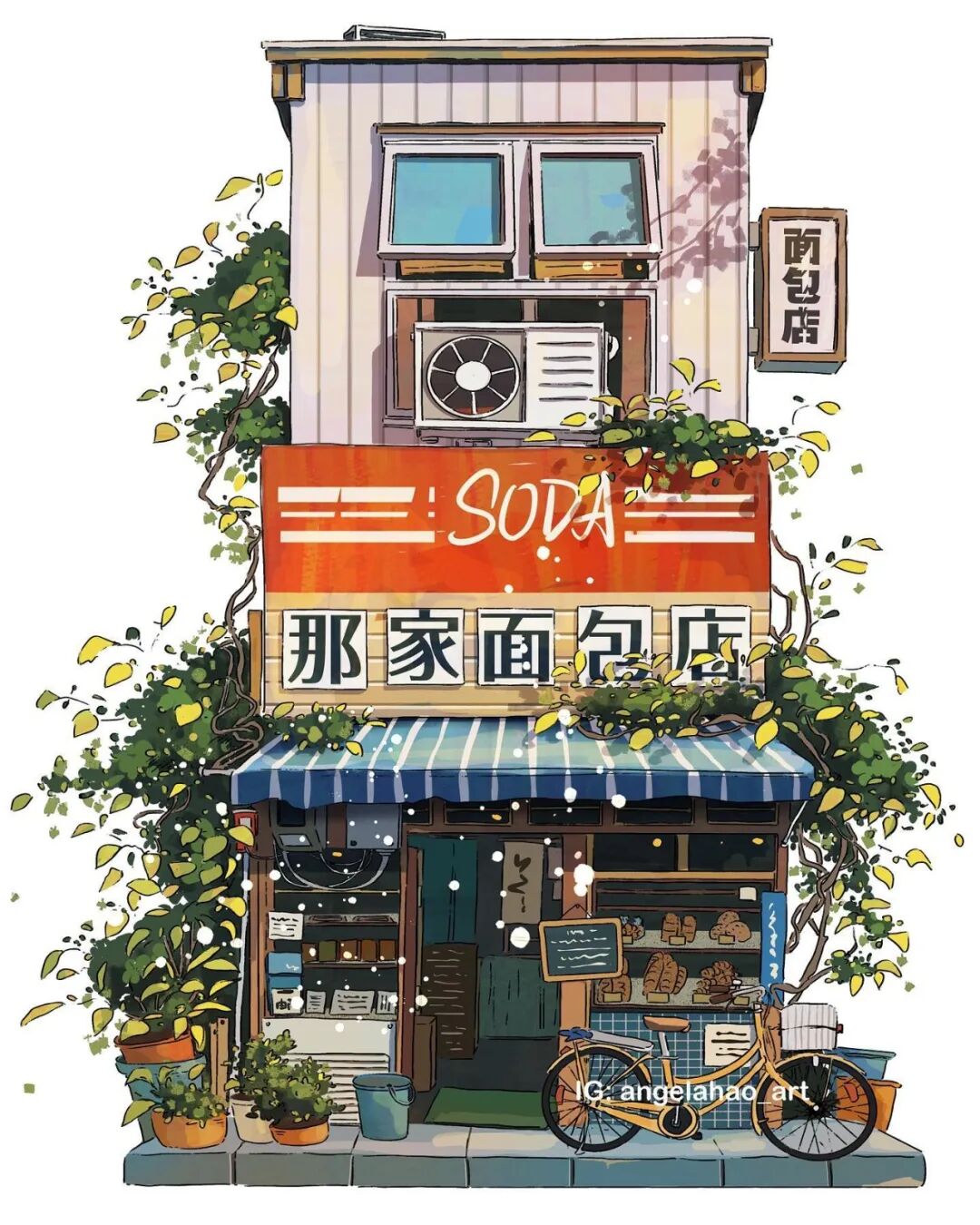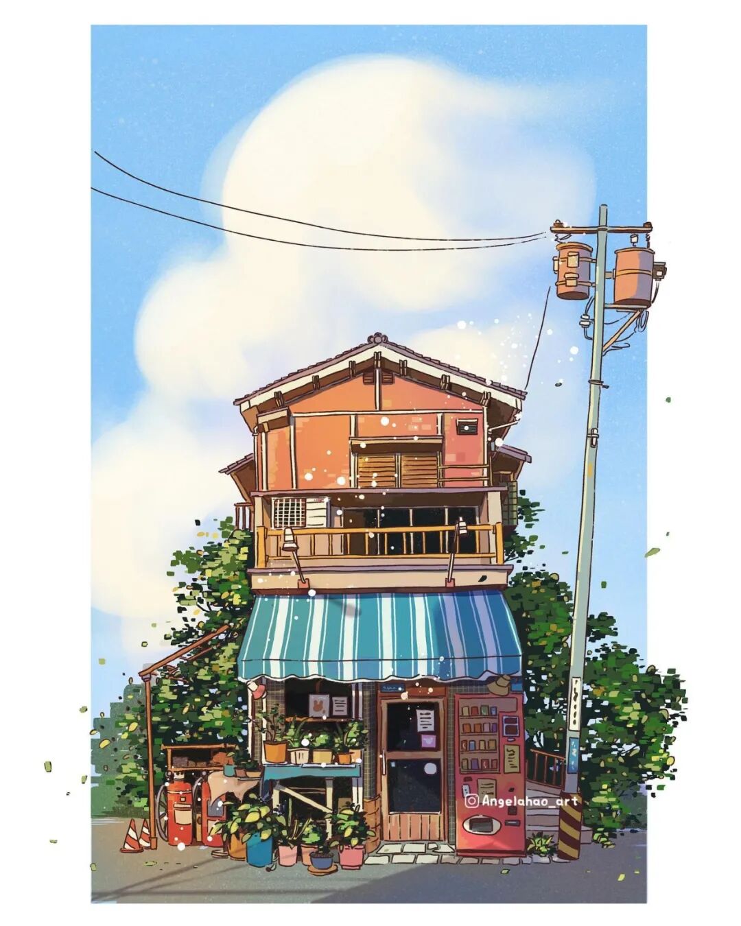 今天升哥给介绍大家一位叫 Angela H 的插画师,她的作品大部分都是一些非常温馨的的街边小店,看完非常治愈!