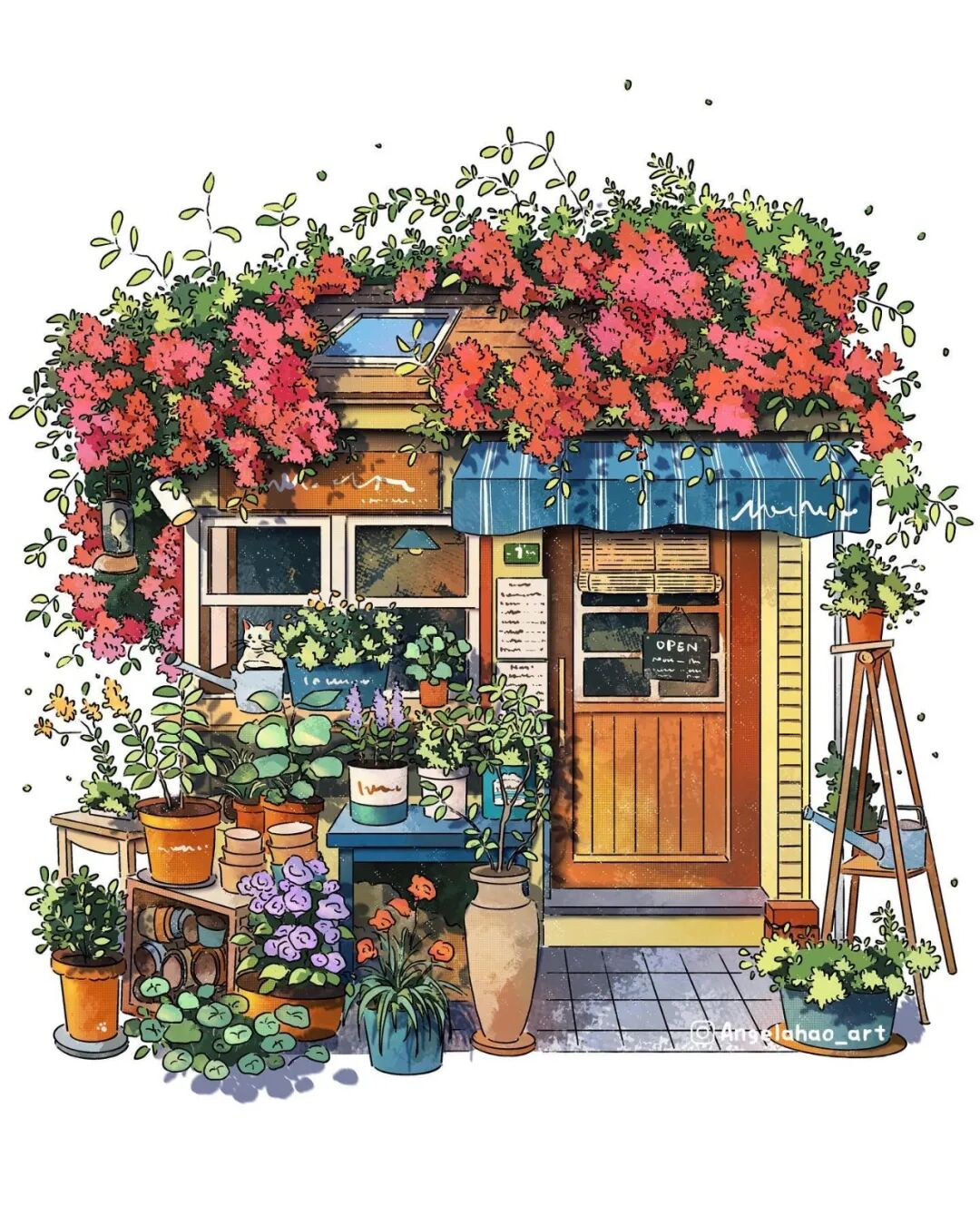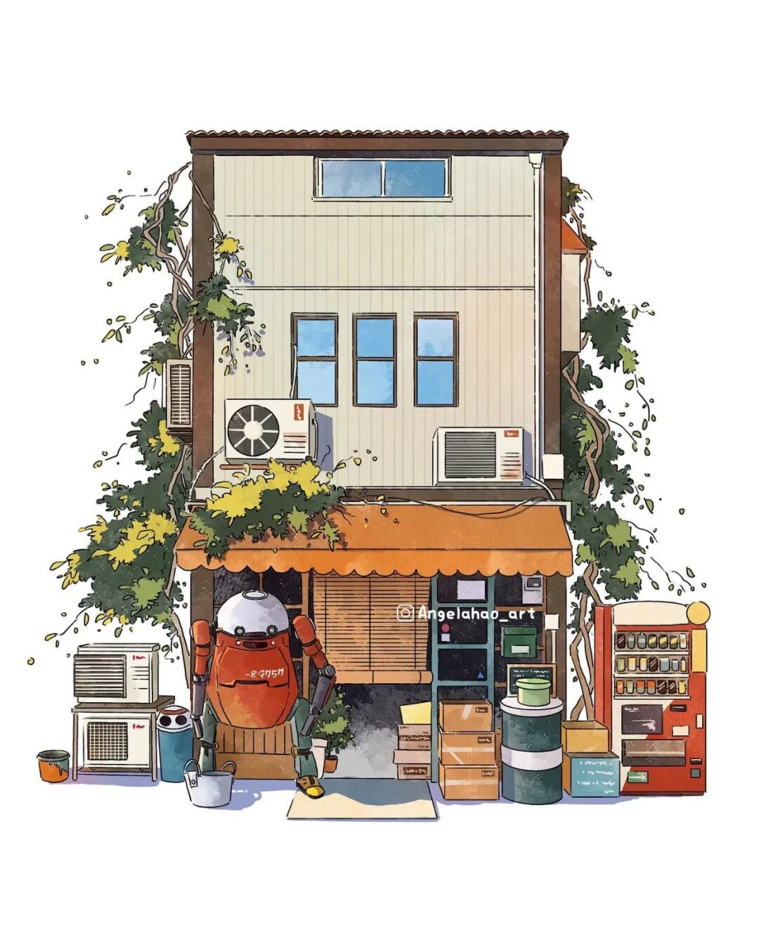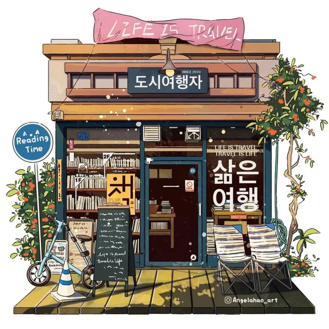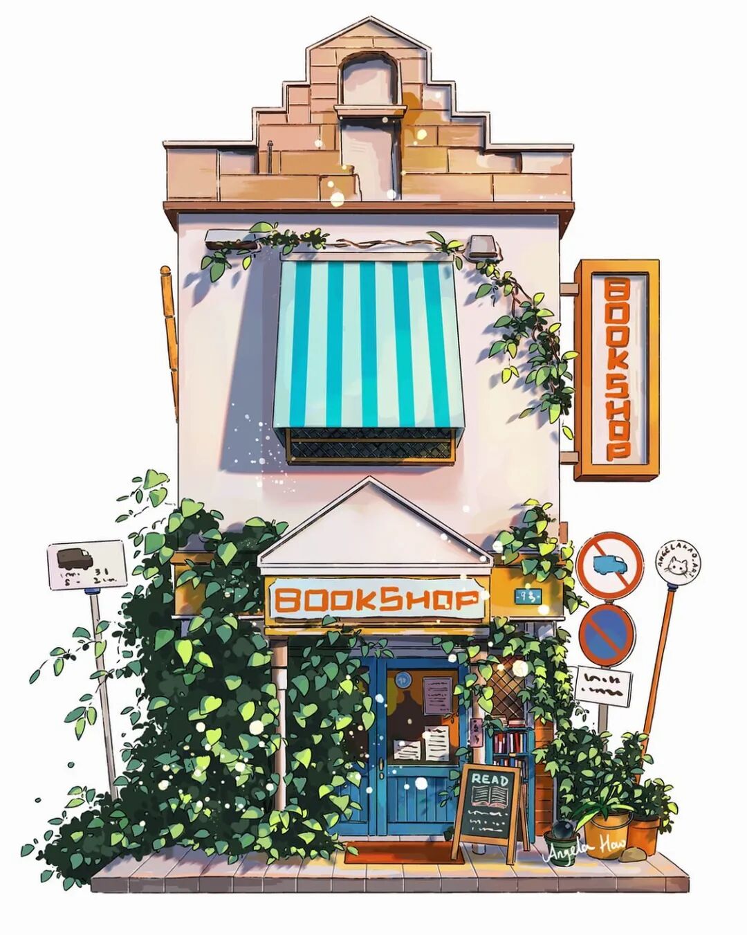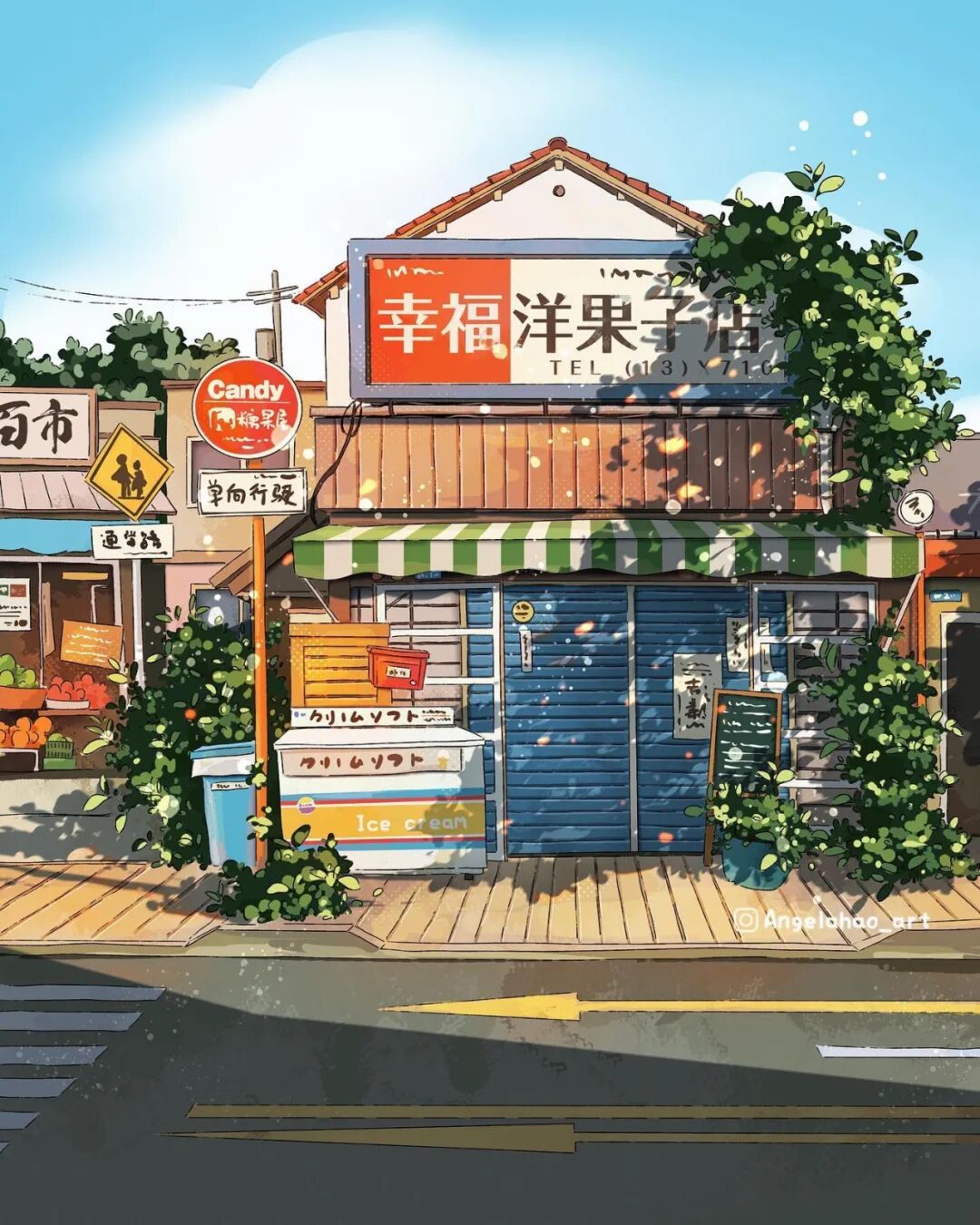 今天升哥给介绍大家一位叫 Angela H 的插画师,她的作品大部分都是一些非常温馨的的街边小店,看完非常治愈!