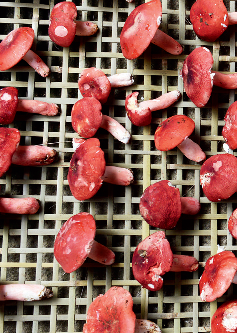 新鲜红椎菌肥厚多汁,清炒或炖煮都上佳。广西村民的烹饪方式很朴素,鲜菇切片,只下姜、酒、盐素炒。他们认为这种做法才能品尝到红椎菌鲜甜的滋味。