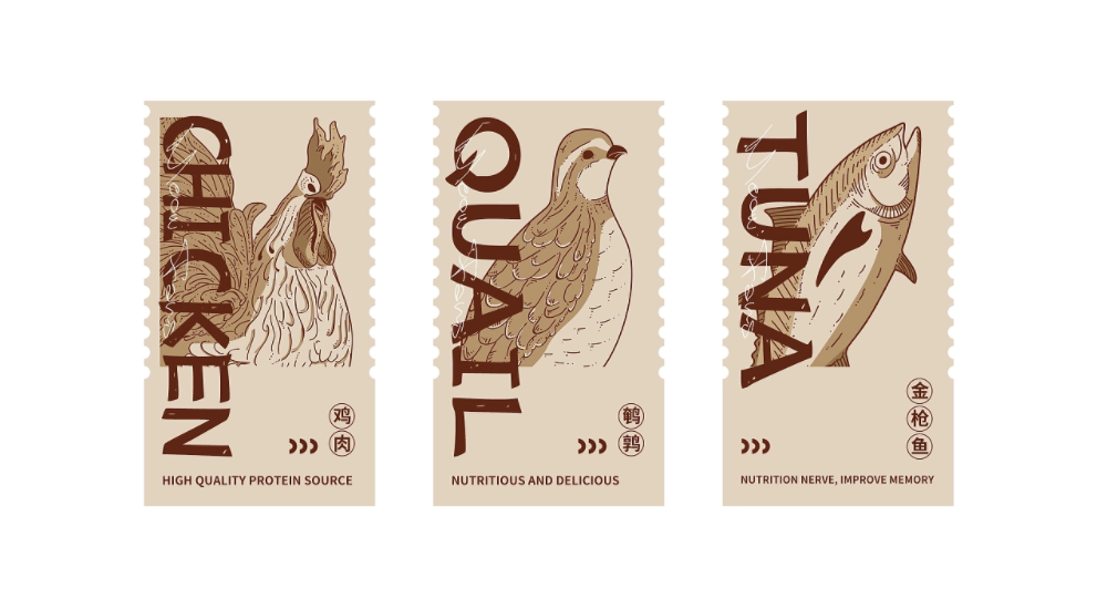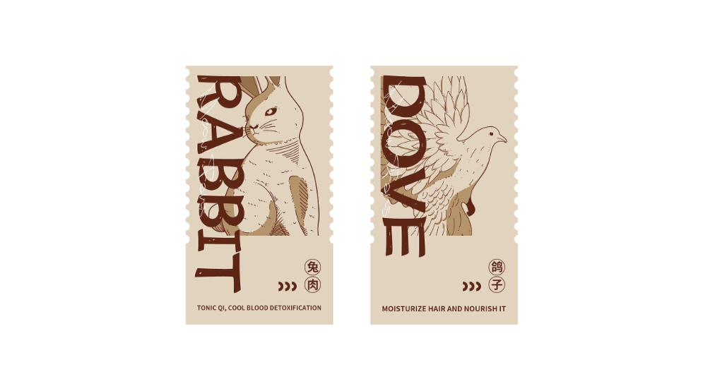 选取公鸡、鹌鹑、兔子等作为画面主视觉