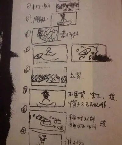 提到分镜,姜文导演的火柴人灵魂分镜必须要拥有姓名,对比其他几位大佬,画技拉满的分镜手稿。姜文导演的手稿,只求一个看懂就好。