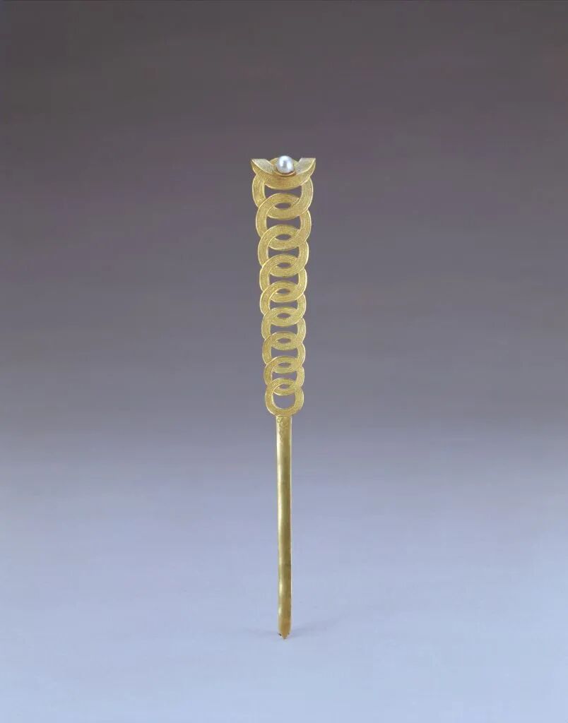 金錾连环花簪,清,长19.5厘米,最宽2.8厘米,故宫博物院藏