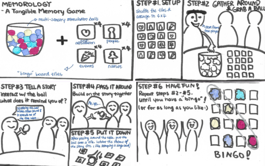 Memorology旨在帮助患有退行性记忆疾病(如痴呆)的患者记住他们的过去(即事件、地点、人物、感觉、里程碑)。Memorology 通过提供轻松有趣的机会与家人和朋友进行社交和联系,从而关注患者的情绪健康方面。它通过游戏化概念,利用多感官有形用户界面TangiBalls,并通过共享的回忆活动吸引患者及其社交网络。