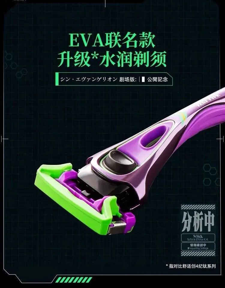 比如众所周知最为邪典的《新世纪福音战士》,它猖狂到什么地步呢?猖狂到给本花这种如花少女推荐联名剃须刀!!!