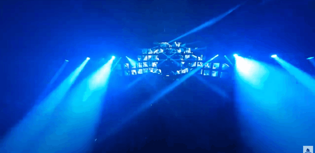 由数块LED屏组成的大型屏幕竖立在舞台中心,DJ台位于它的正前方,每当音乐节奏变换,LED屏也会呈现出不同的色彩。