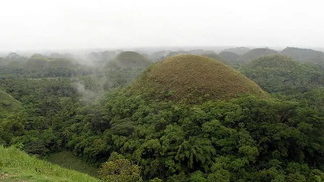 菲律宾薄荷岛中部有这样一组形状异常奇特的山丘,它们宛如长在大地上的棕色巧克力,呈规则的圆锥状,山丘上遍布的草丛更是像撒在巧克力上的可可粉,令人垂涎不已。这种非凡的景观全世界仅此独有。