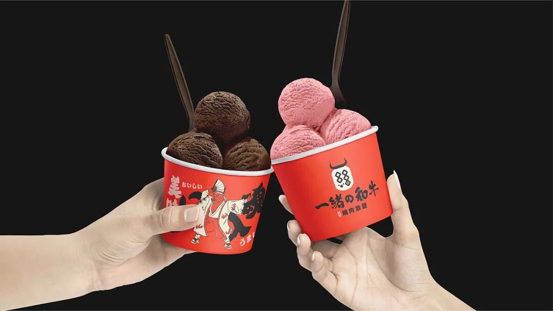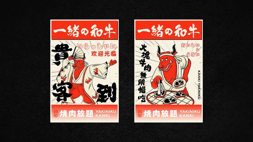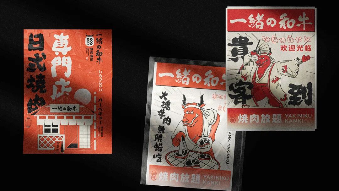 一绪和牛是一家新兴连锁日式放题烤肉品牌。年轻、活力、时尚是一绪和牛希望带给消费者的情感表达,并在色彩、IP形象等方面进行差异化处理,让人们通过品牌调性立马想到这个品牌或者产品。