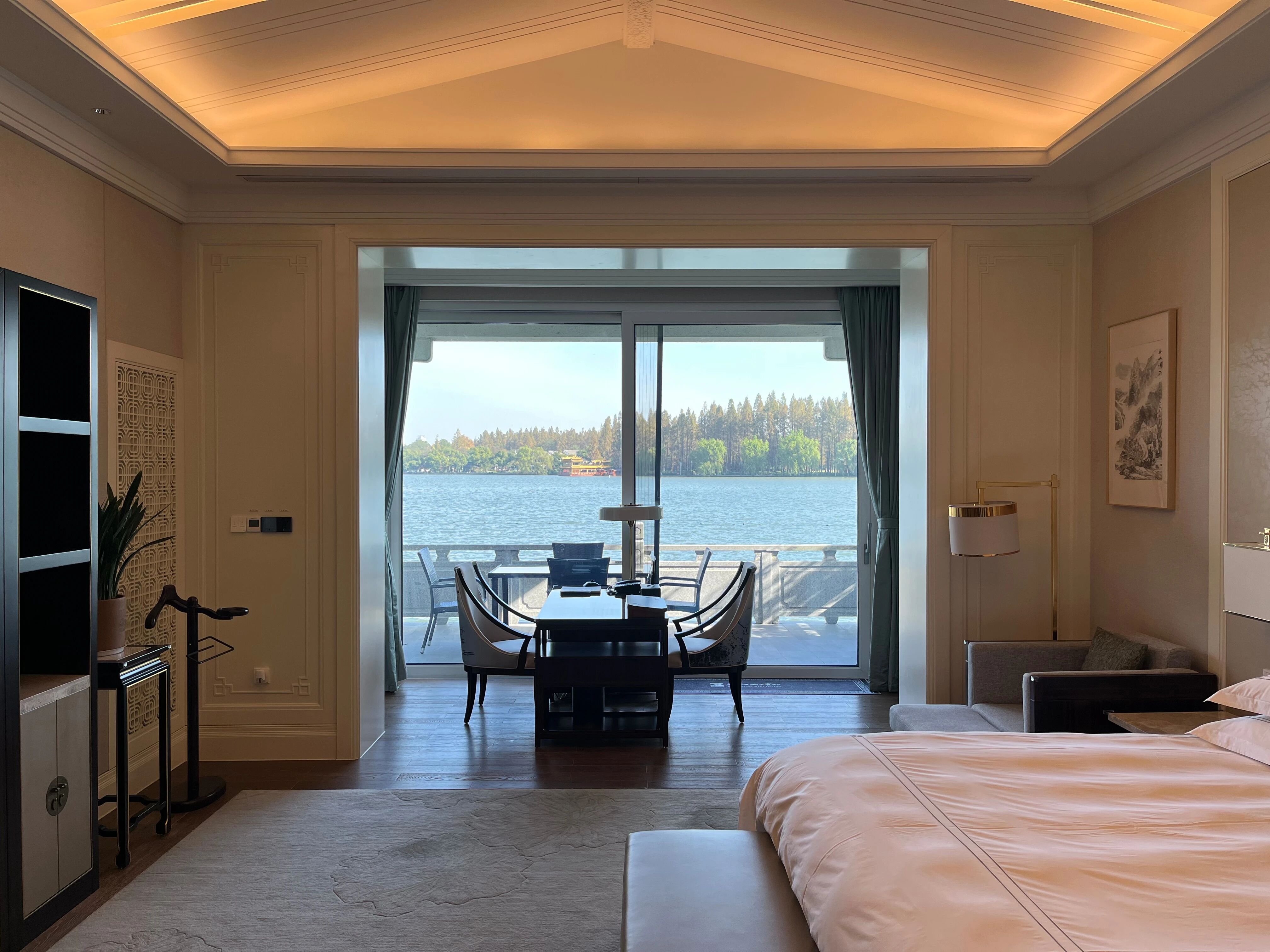 5号楼的营造更为梦幻,部分客房的露台延伸至西湖水之上,仿佛漂浮在西湖上一般,是真正意义上的枕西湖而居。