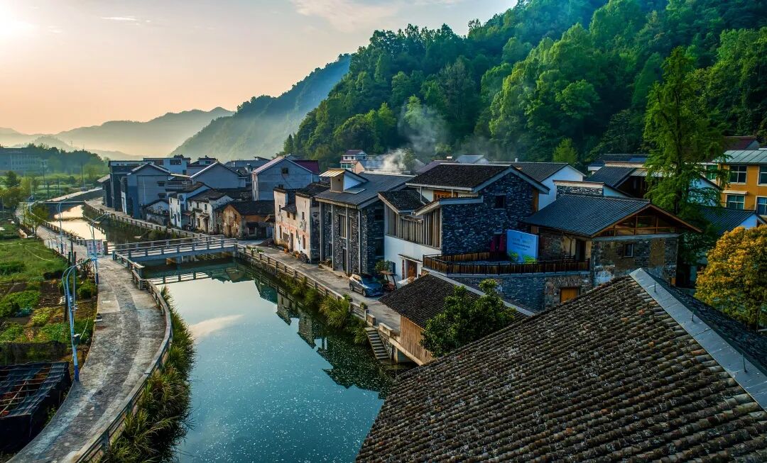 文村村地处杭州市富阳区远郊,地理位置较为偏僻,至今已有九百多年历史。因老村背后形似倒立“毛笔状”的文笔峰,环绕犹如砚台的溪流,顾名“文村”。