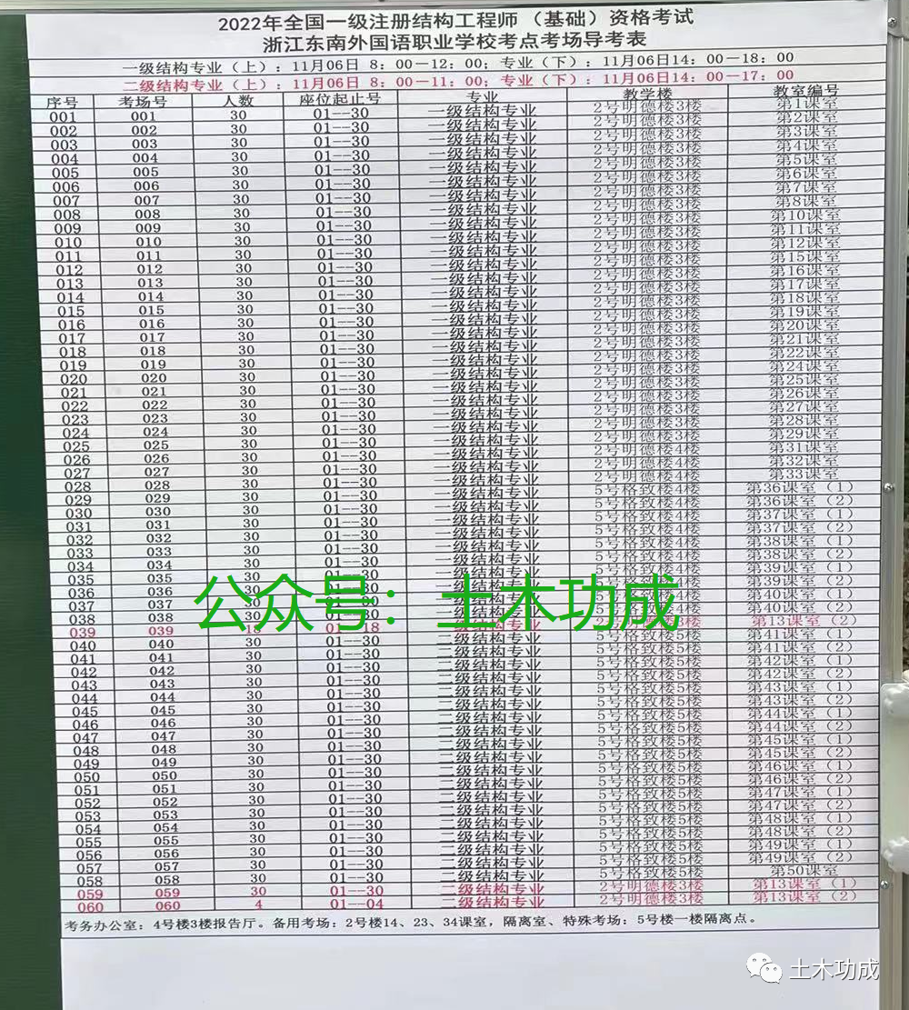 (浙江省2022年一级、二级结构专业考试考场分布,感谢考友提供)