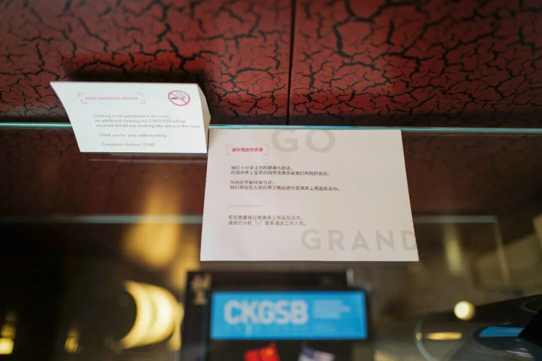 ▲ 如果入住多晚,我一般都会在早晨起身后把环保标牌放在床铺上、把毛巾浴巾挂起,以告知清扫员工不更换房间布草,以重复使用毛巾和床单的方式,减少因清洗而造成的水资源的浪费和环境污染。