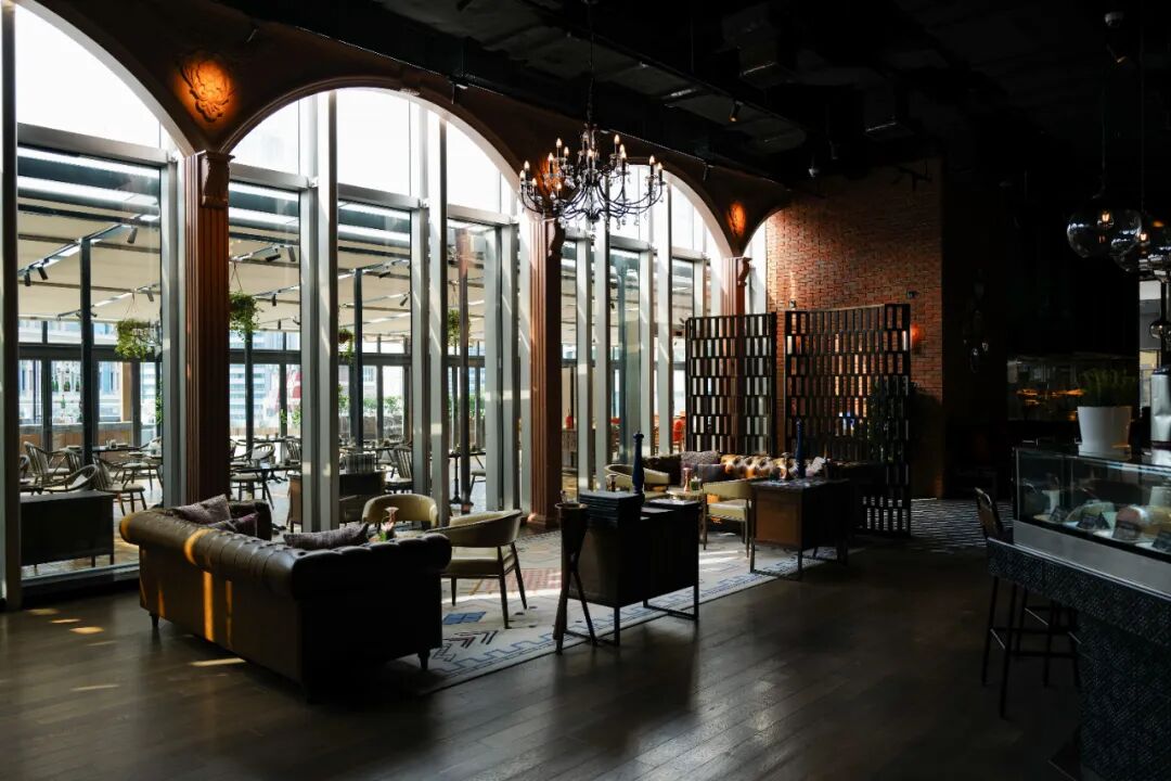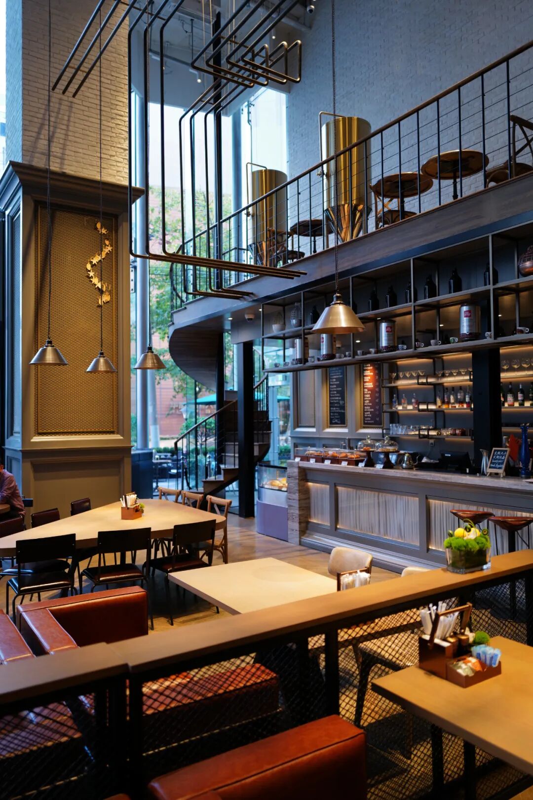 为此,世茂国际广场在酒店抵达厅旁侧,辟出了一座设有街面和酒店双向入口的餐饮空间——铜餐厅Copper Bistro。