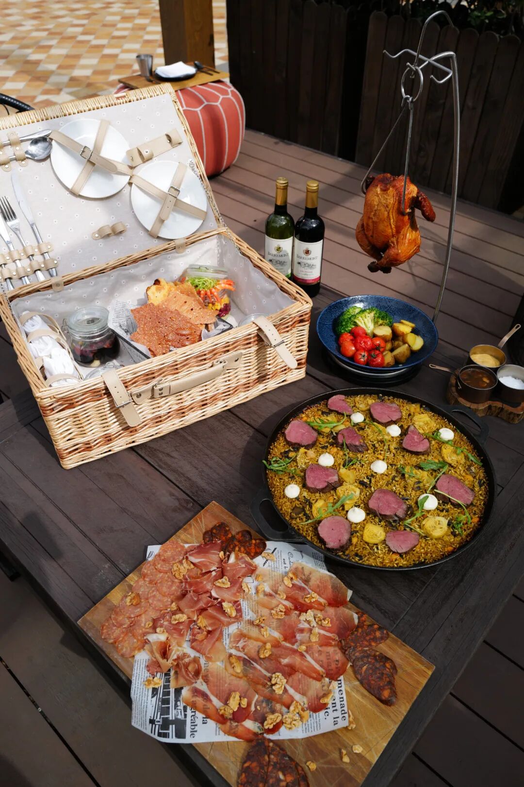 户外露台有多间木质Cabana,是气温适宜、阳光灿烂时日的理想就餐据点。天气晴好时,与家人挚友围坐Cabana守护的餐席,享用由西班牙火腿、海鲜饭、烤鸡、烤时蔬等地中海美味构成的套餐。再配上精选的佳酿,度假感呼之欲出。