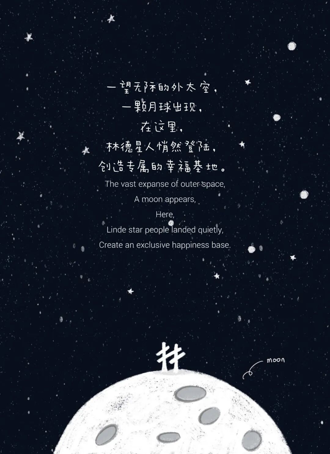 灵感:“ 林德LOGO‘林’在月球上变形成一座空间站,寓意着林德星人对未来的期许。”