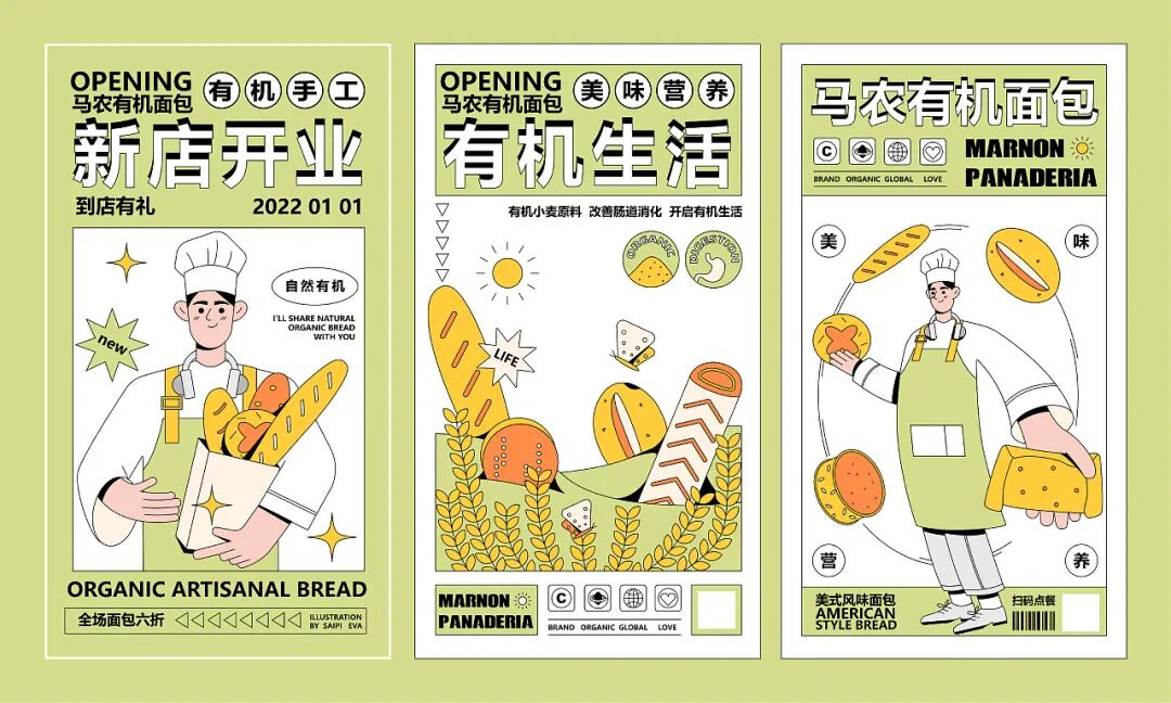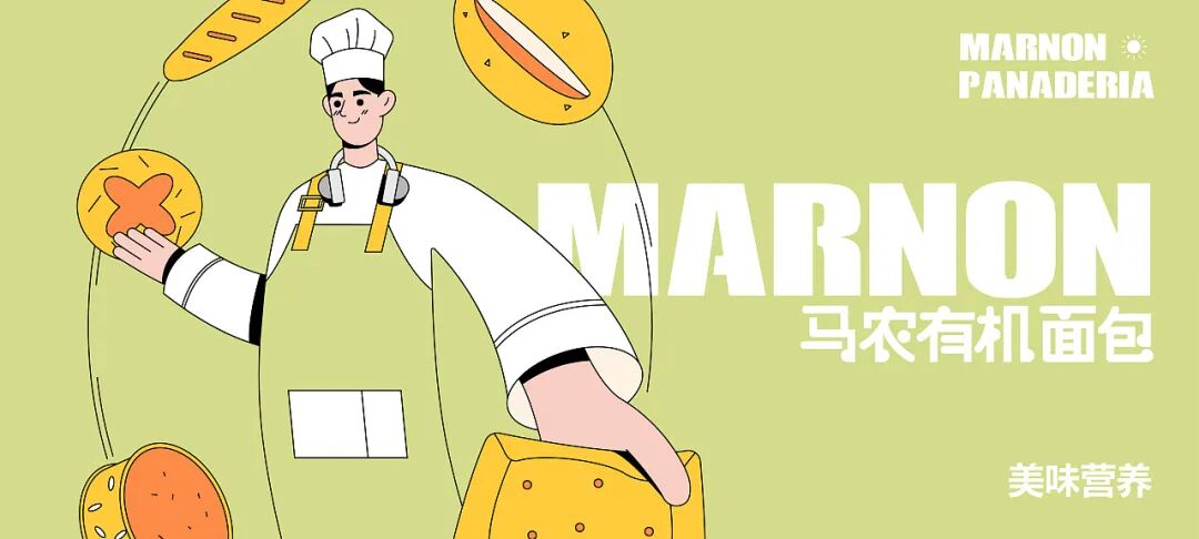 因此在IP设计上,以主理人马先生为原型,并采用清新有机的绿色为主色调,融入亮黄和橙色,整体清爽明朗,传达出手工有机健康营养的理念。