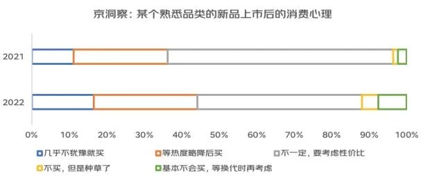 在面对“熟悉的新品”时,“几乎不犹豫就买”的用户占比去年多出1/3,但需要注意的是,选择“不买”的人群占比也较去年增加了,“考虑性价比后再作决定”的中间人群大幅压缩。