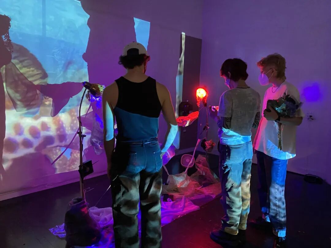 Afloat的重点是通过展示基于观众侵入其空间的织物运动变化来建立人类与海洋生物之间的关系。通过显示真正存在的垃圾,以表明海洋当前的现实状况,并直接反映人类消费对它的影响。
