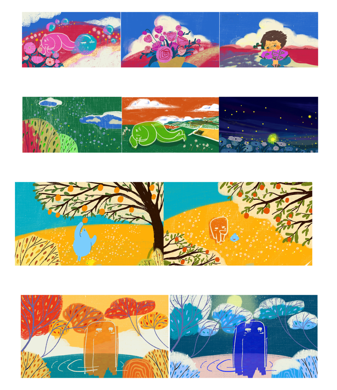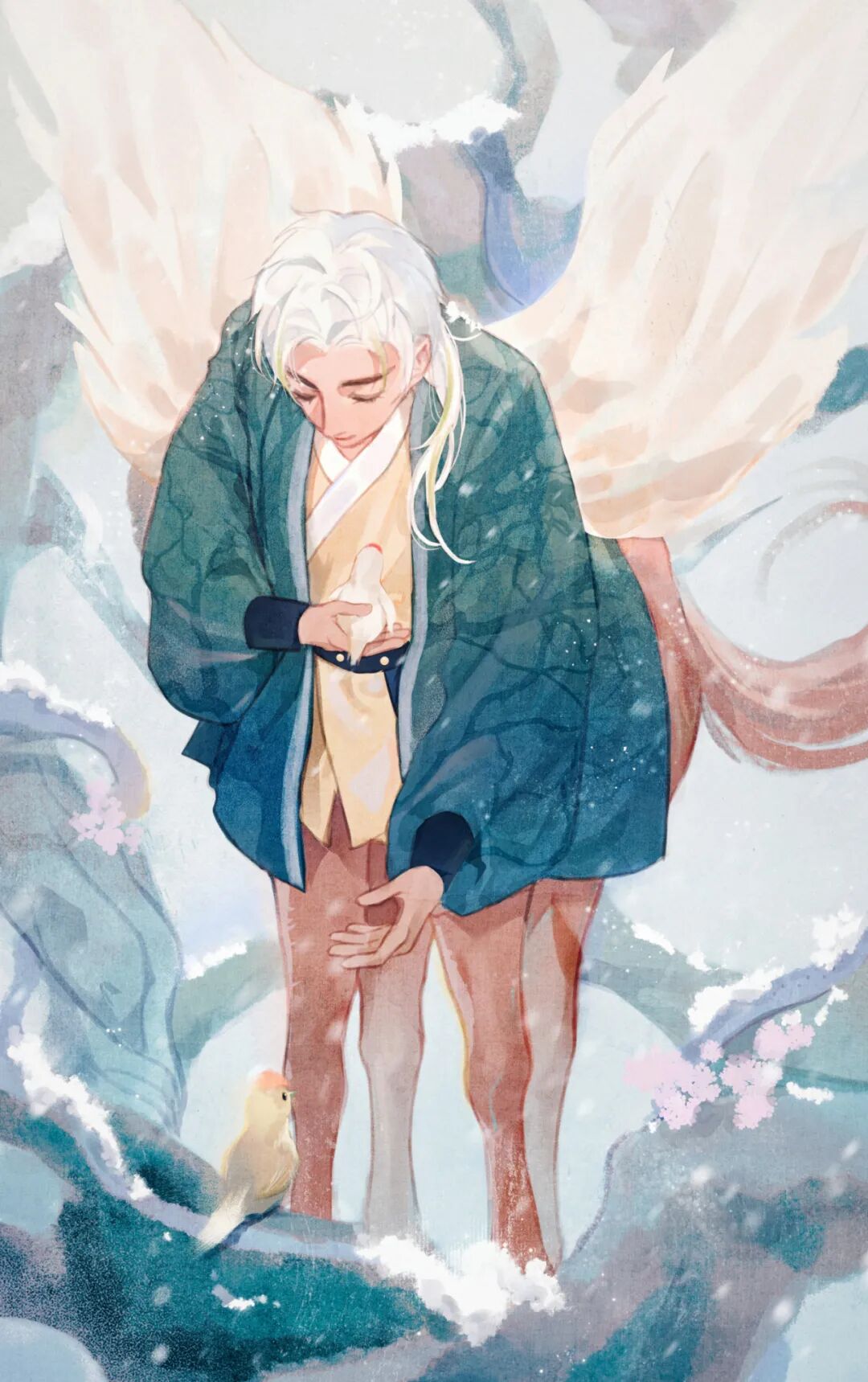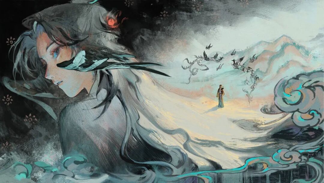 作品简介:万物皆有灵,雪地中路过的诗人因鸿雁的爪印写下了一首关于人生感悟的诗。鸿雁透过这首诗看到了诗人的一生——诗人被人们“造神”和“毁神”之后一生流离颠沛仍能保持一颗赤子之心。是基于苏轼的“人生到处知何似,应似飞鸿踏雪泥。”为概念画的绘本。
