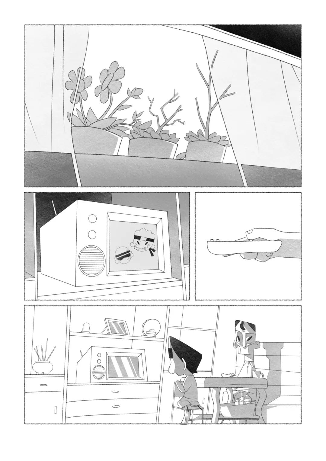作品简介:女孩独自一人在家,突然响起的钥匙叮铃声吸引了她的注意,她却朝声音相反的方向跑回自己的房间里。女孩为了躲避声音躲进了被子里却来到另外一个世界......女孩因打碎碗而害怕的躲在厨房,父亲的影子逐渐靠近厨房.....