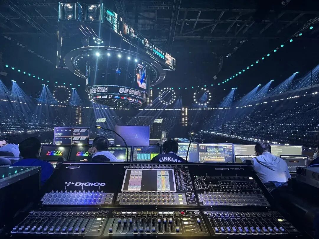 由于本次的总决赛是一个「四面台」的设计,相较于三面台,它更容易产生反射的情况。这对于音箱的投射距离、覆盖范围以及精准度都有着极高的要求,因此导演团队及音响总监周鑫伟先生特意选择了L-Acoustics和DiGiCo为他们提供稳定、高品质的音频系统。