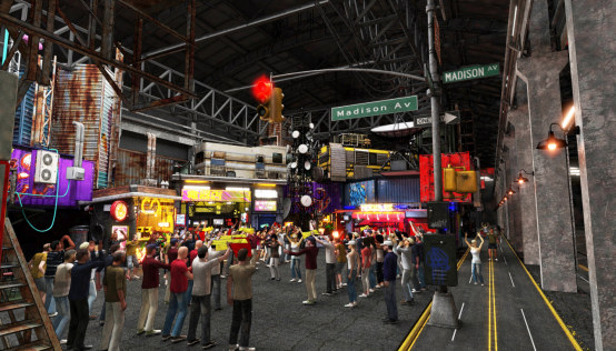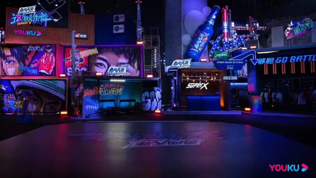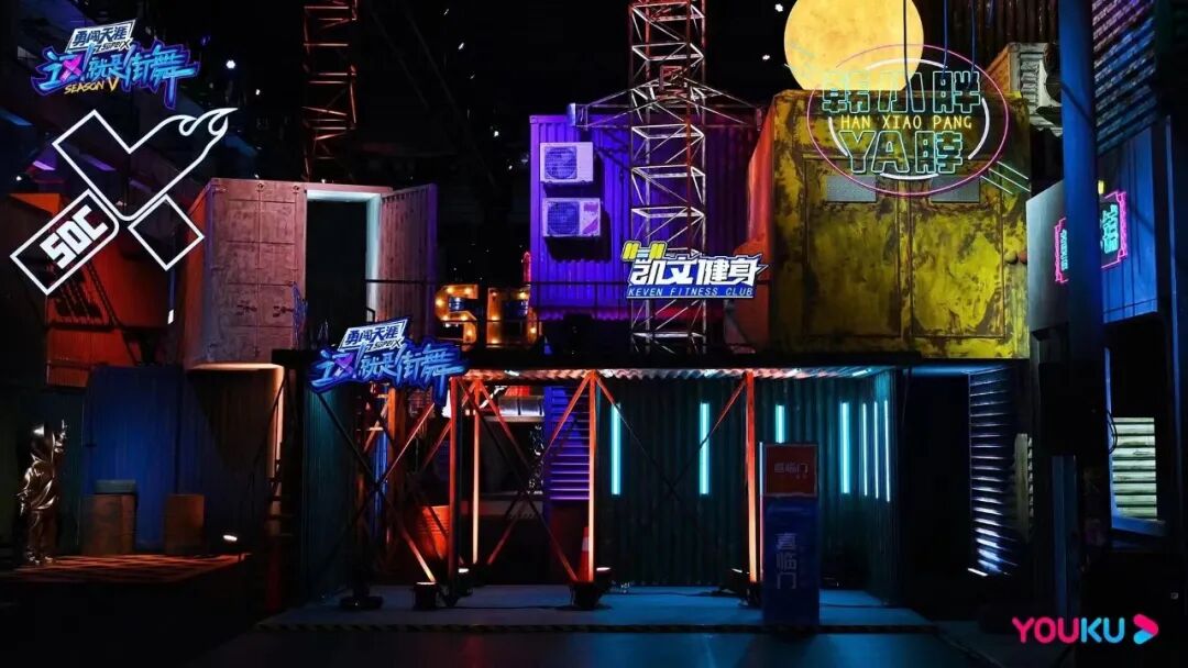 本赛季《这!就是街舞》结合今年青春季BATTLE FOR HOPE奋烈有时的节目主题,提出一个街舞“平行宇宙”概念,发现和打造一个新的街舞宇宙空间,舞美主要结构布局从原先的四条街道的氛围设计转变如今的两个平行空间,一边代表“传统”的,走oldschool风格,另一边代表“未来”,充满未来科技感,全面升级三维立体空间,让舞者和观众更好的融入其中,同时呼应已取得一定成就的街舞队长和大师团,带着街舞新生力量共同前行的概念。不同于往季舞美景片组合而成的置景,今年节目舞美真正在场地内构建1:1的立体楼房和不同的店铺功能区域。舞美也更加注重空间的氛围感和体验感,同时内部空间也打造了当代年轻人的社交场景,比如滑板公园、露营地、练歌房、篮球场等等,更加丰富了场景内的趣味性。