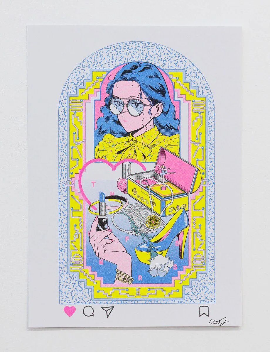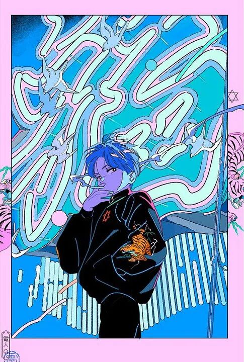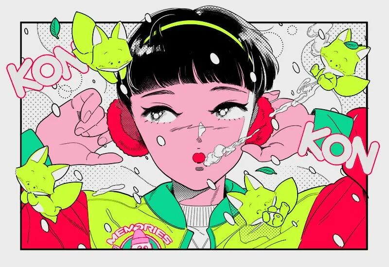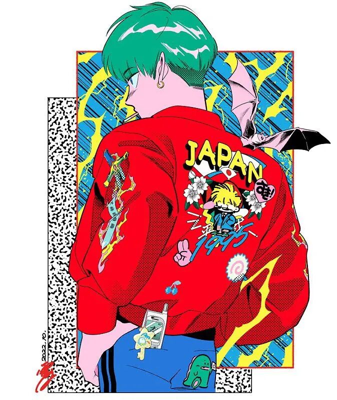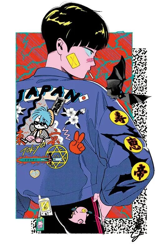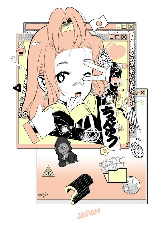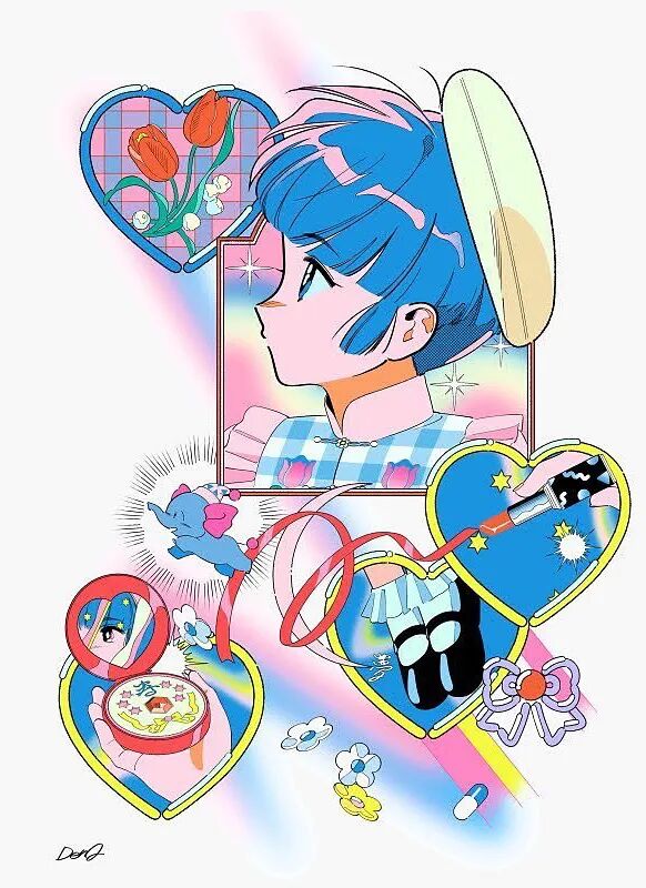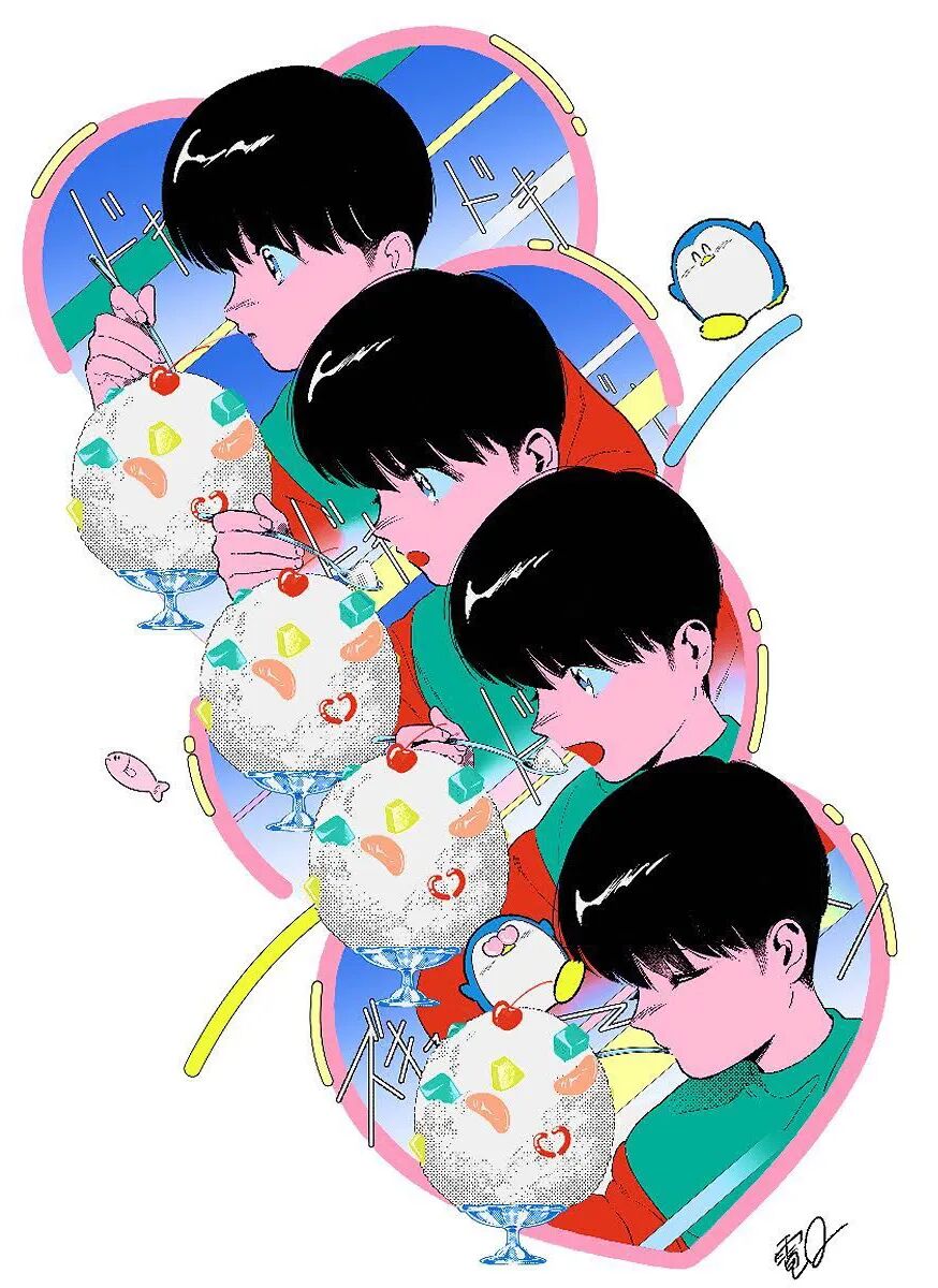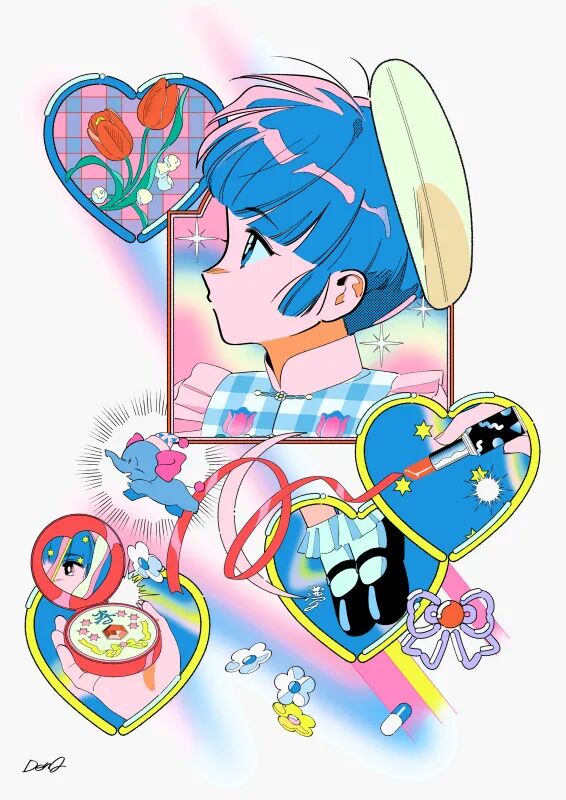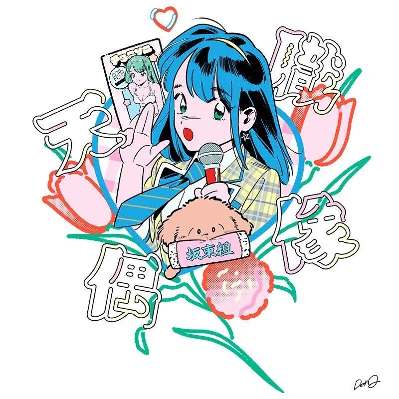 電Q / DenQ,日本插画师,出生于琦玉。DenQ 的作品充满了上世纪80、90年代日本流行文化的影子,擅长创作日漫风格的插画,清凉复古、青春靓丽是其作品的典型特征。